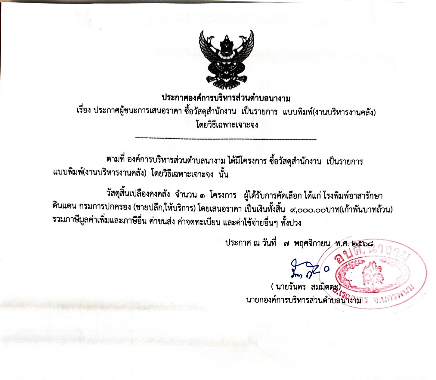ชื่อเรื่อง : ประกาศผู้ชนะการเสนอราคา ซื้อวัสดุสำนักงาน เป็นรายการ แบบพิมพ์(งานบริหารงานคลัง) โดยวิธีเฉพาะเจาะจง