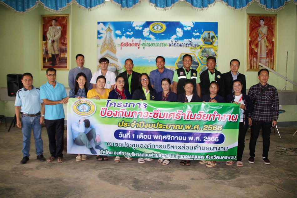 รายละเอียด : วันพุธที่ 1 พฤศจิกายน 2566 องค์การบริหารส่วนตำบลนางาม ได้จัดโครงการ โครงการคัดกรองภาวะซึมเศร้าในวัยทำงาน ประจำปี 2566 โดยมีวัตถุประสงค์ เพื่อให้ประชาชนกลุ่มวัยทำงาน สามารถประเมินภาวะซึมเศร้าด้วยตนเองได้ มีความรู้ความเข้าใจในเรื่องของภาวะซึมเศร้า และสามารถดูแลตนเองได้เมื่อมีภาวะซึมเศร้า ณ หอประชุมองค์การบริหารส่วนตำบลนางาม