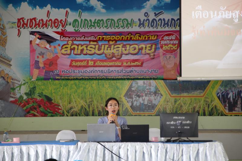 รายละเอียด : วันศุกร์ที่ 2 พฤษภาคม 2568 องค์การบริหารส่วนตำบลนางาม ได้จัดโครงการส่งเสริมการออกกำลังกายสำหรับผู้สูงอายุ ประจำปีงบประมาณ 2568 โดยมีวัตถุประสงค์ เพื่อส่งเสริมให้ผู้สูงอายุมีสุขภาพจิตใจที่ดี โดยการทำกิจกรรมร่วมกัน ลดภาวะโรคเครียด โดยการจัดโครงการครั้งนี้ ได้รับเกียรติจากนายไพโรจน์ คำหาญ ประธานคณะกรรมการชมรมผู้สูงอายุตำบลนางาม เป็นผู้กล่าวรายงานวัตถุประสงค์โครงการ นายนวน บุญก้อน รองนายกองค์การบริหารส่วนตำบลนางาม ประธานในพิธีกล่าวเปิดโครงการ เวลา 09.00 น. ณ หอประชุมองค์การบริหารส่วนตำบลนางาม