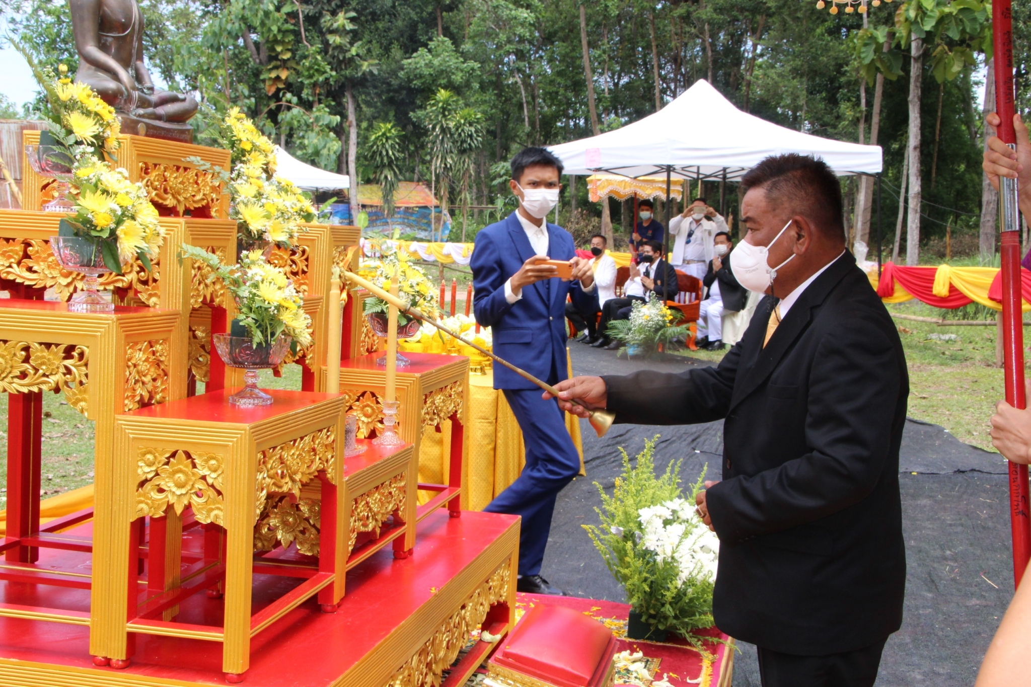 นายรันดร สมมิตะ นายกองค์การบริหารส่วนตำบลนางาม เข้าร่วมพิธีอัญเชิญช่อฟ้าขึ้นสู่ยอดอุโบสถ