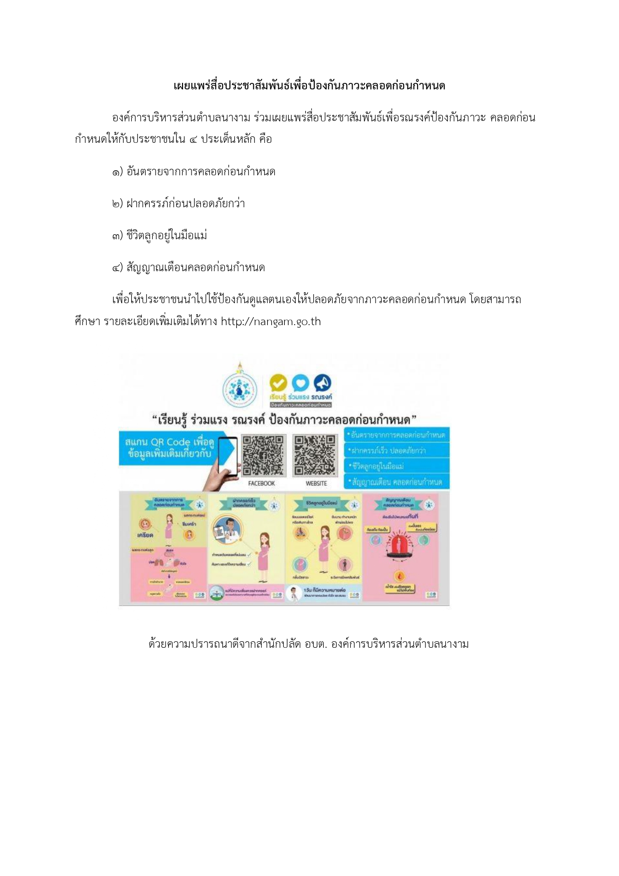 เผยแพร่สื่อประชาสัมพันธ์เพื่อป้องกันภาวะคลอดก่อนกำหนด