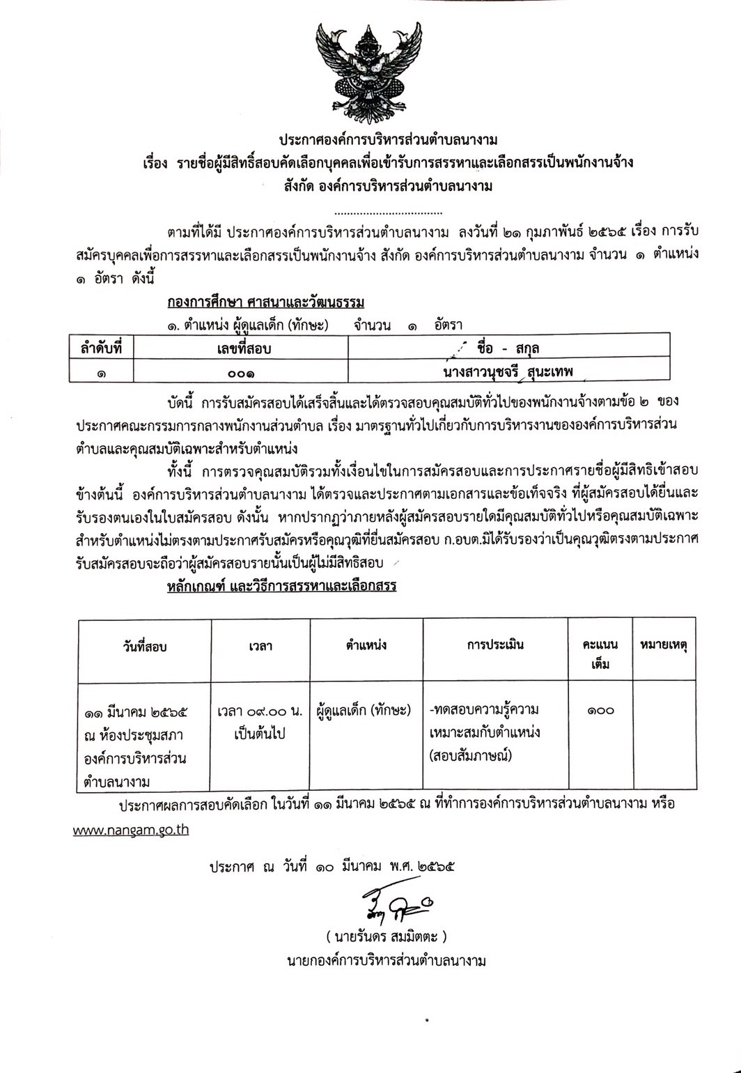 ชื่อเรื่อง : ประกาศ รายชื่อผู้มีสิทธิ์สอบคัดเลือกบุคคลเพื่อเข้ารับการสรรหาและเลือกสรรเป็นพนักงานจ้าง สังกัดองค์การบริหารส่วนตำบลนางาม