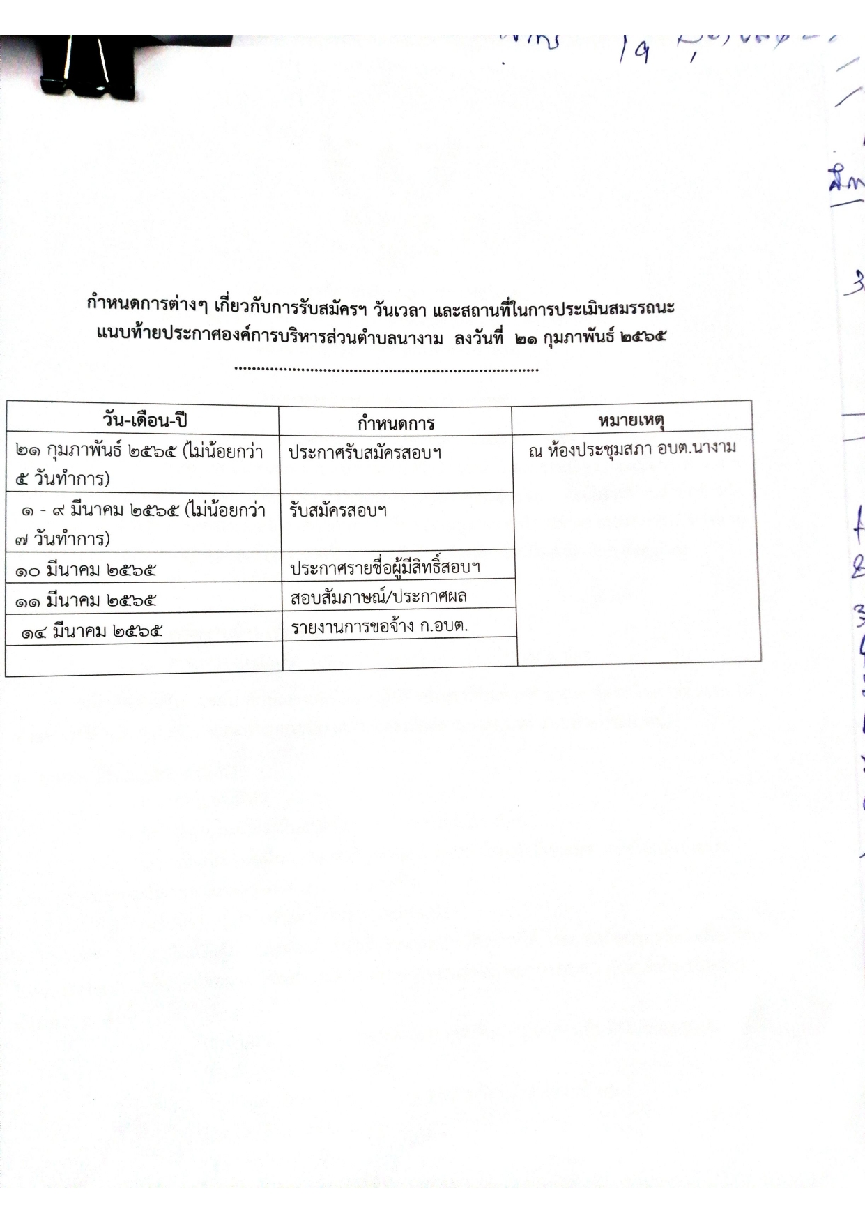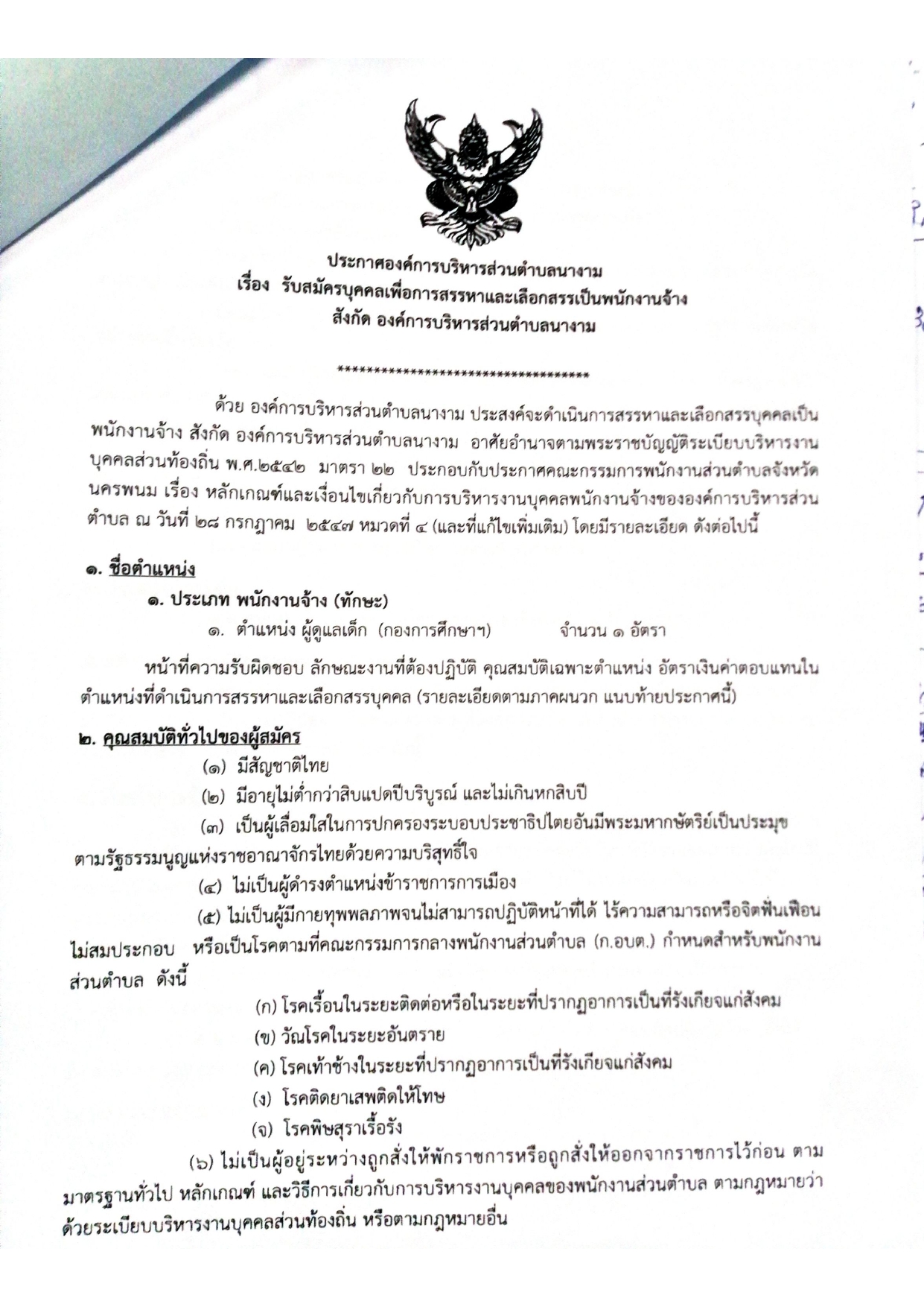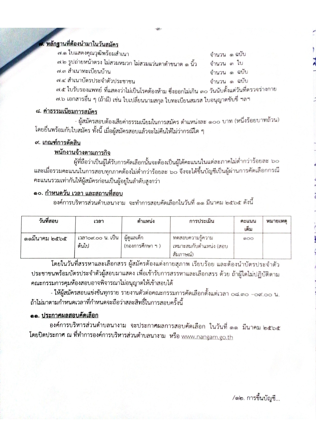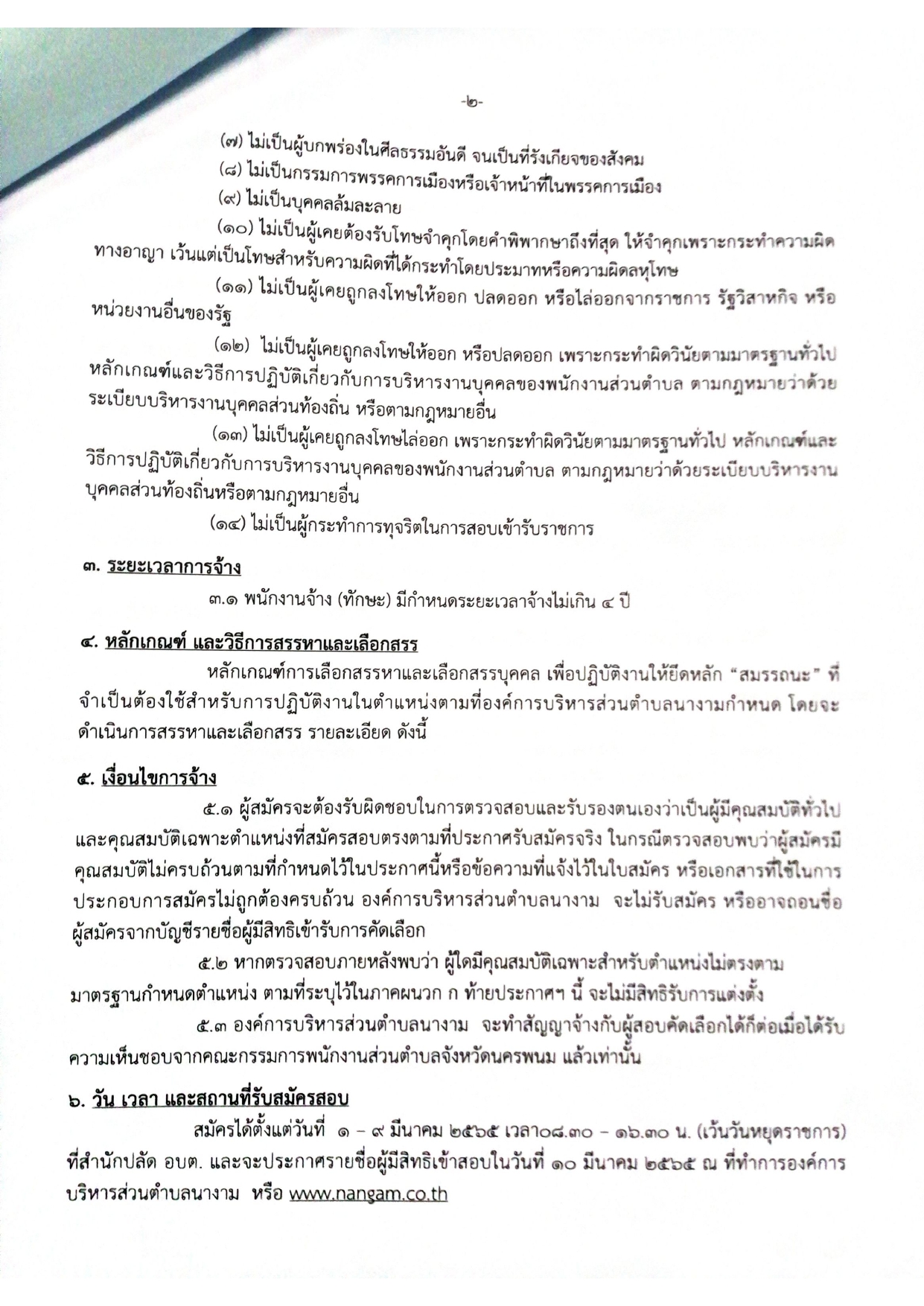 รายละเอียด : ประกาศองค์การบริหารส่วนตำบลนางาม เรื่อง รับสมัครบุคคลเพื่อการสรรหาและเลือกสรรเป็นพนักงานจ้าง สังกัดองค์การบริหารส่วนตำบลนางาม *************************************************************************************************************** 1. ชื่อตำแหน่ง ผู้ดูแลเด็ก (กองการศึกษาฯ) จำนวน 1 อัตรา ประเภท พนักงานจ้าง (ทักษะ) 2. ระยะเวลาจ้าง สัญญาจ้างไม่เกิน 4 ปี 3. วัน เวลา การรับสมัคร - วันที่ 21 กุมภาพันธ์ พ.ศ. 2565 ประกาศรับสมัคร - วันที่ 1 - 9 มีนาคม พ.ศ. 2565 รับสมัครสอบ ฯ - วันที่ 10 มีนาคม พ.ศ. 2565 ประกาศรายชื่อผู้มีสิทธิสอบ ฯ - วันที่ 11 มีนาคม พ.ศ. 2565 สอบสัมภาษณ์ และ ประกาศการสอบ - วันที่ 14 มีนาคม พ.ศ. 2565 รายงานการขอจ้าง ต่อ ก.อบต.จังหวัดนครพนม รายละเอียด ดังนี้