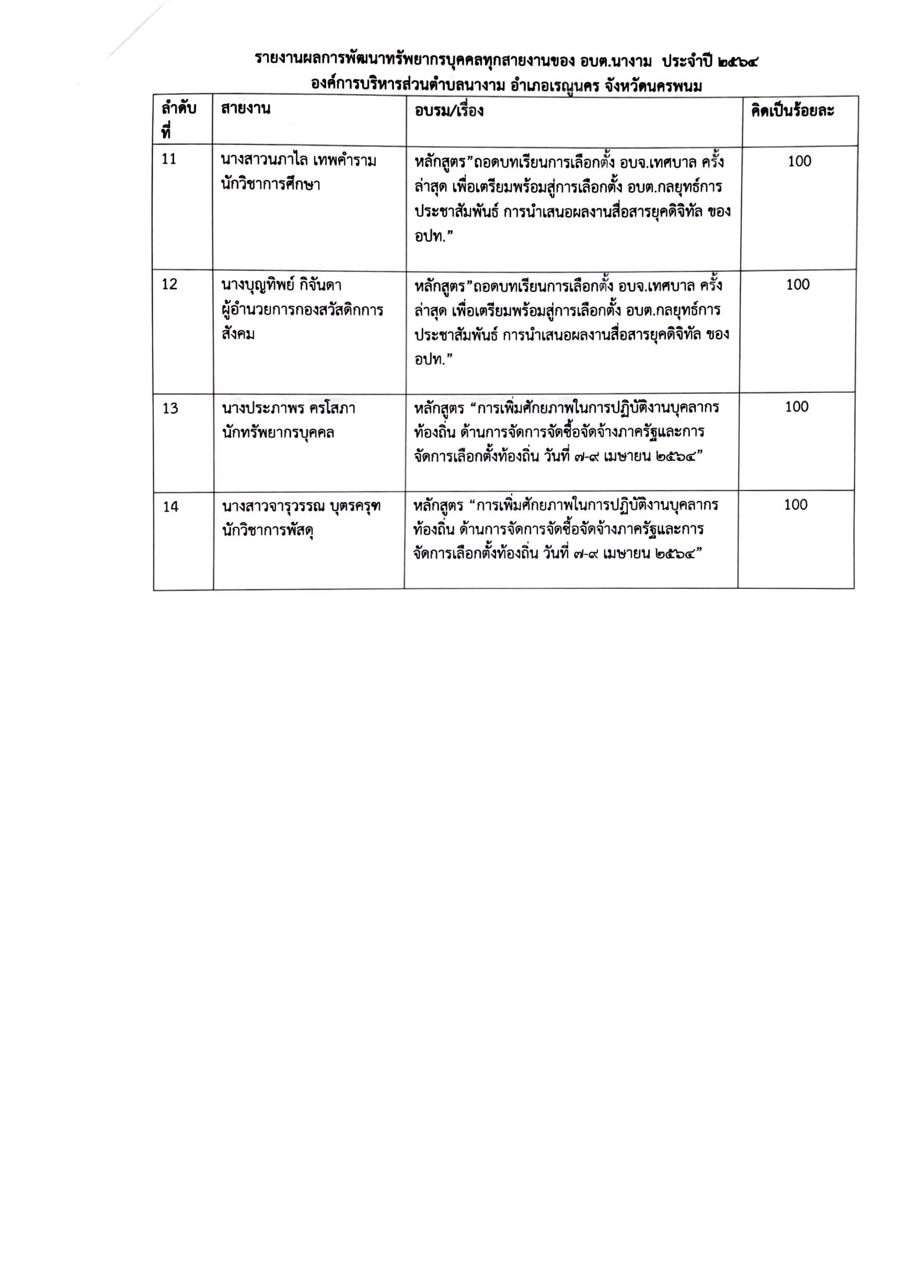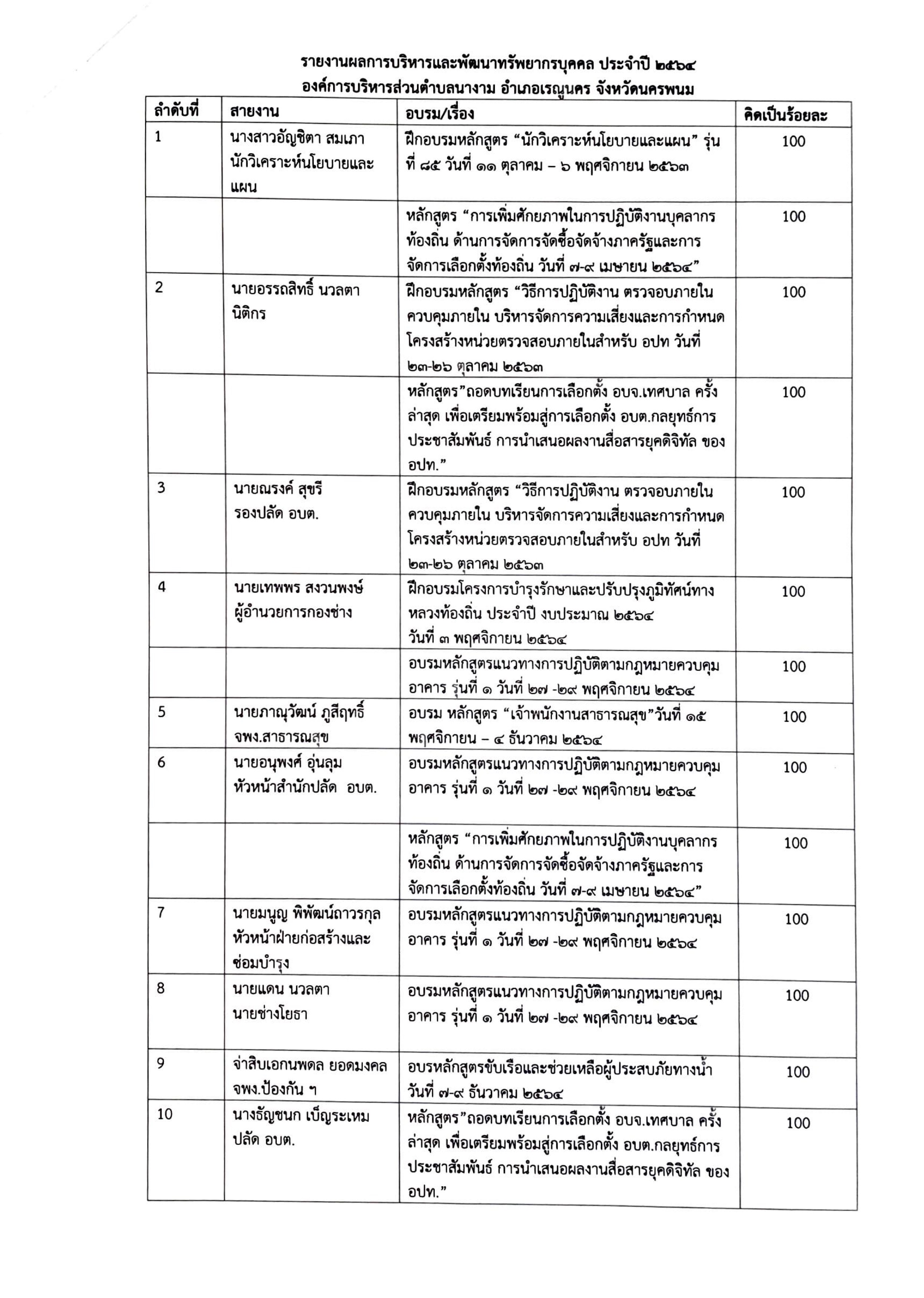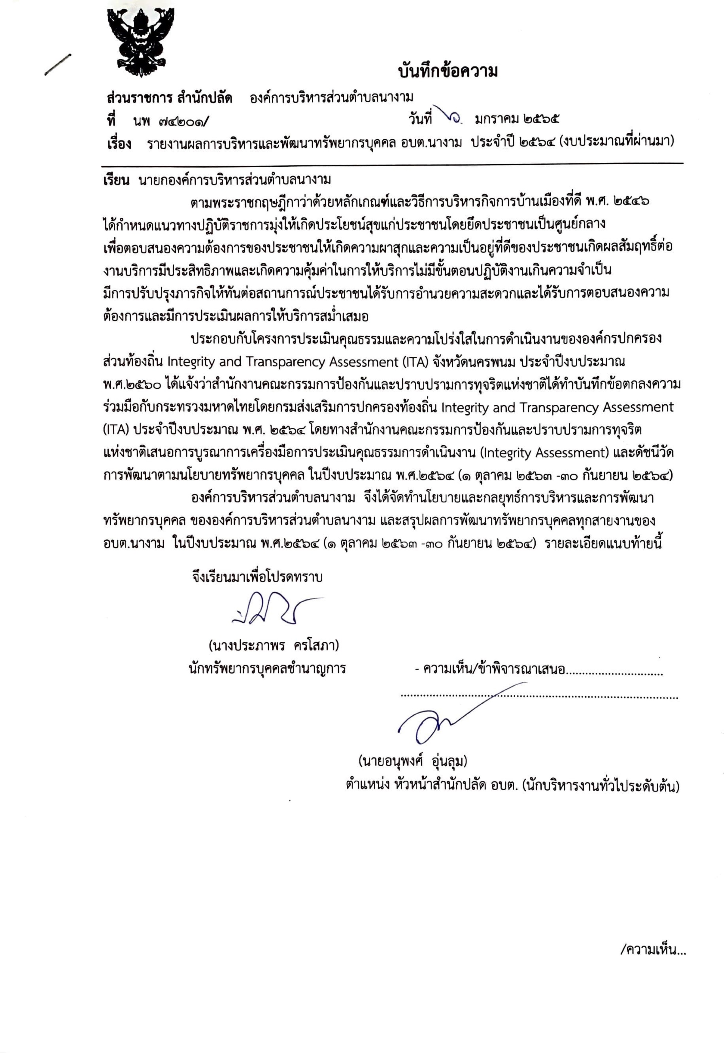 รายงานผลการบริหารและพัฒนาทรัพยากรบุคคล ประจำปีงบประมาณ พ.ศ. 2564