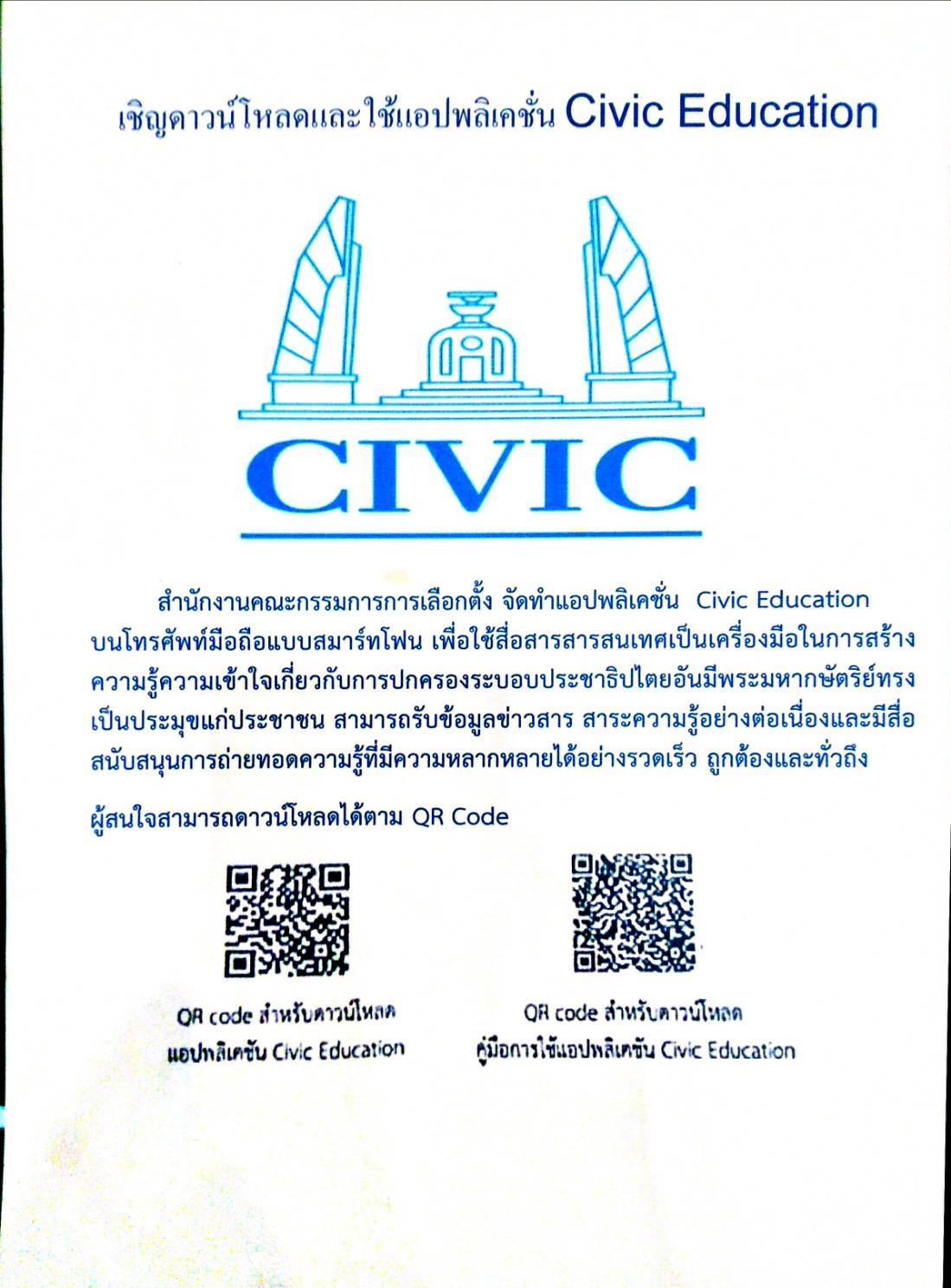 ชื่อเรื่อง : เชิญดาวน์โหลดและใช้แอปพลิเคชั่น Civic Education บนโทรศัพท์มือถือแบบสมาร์ทโฟน