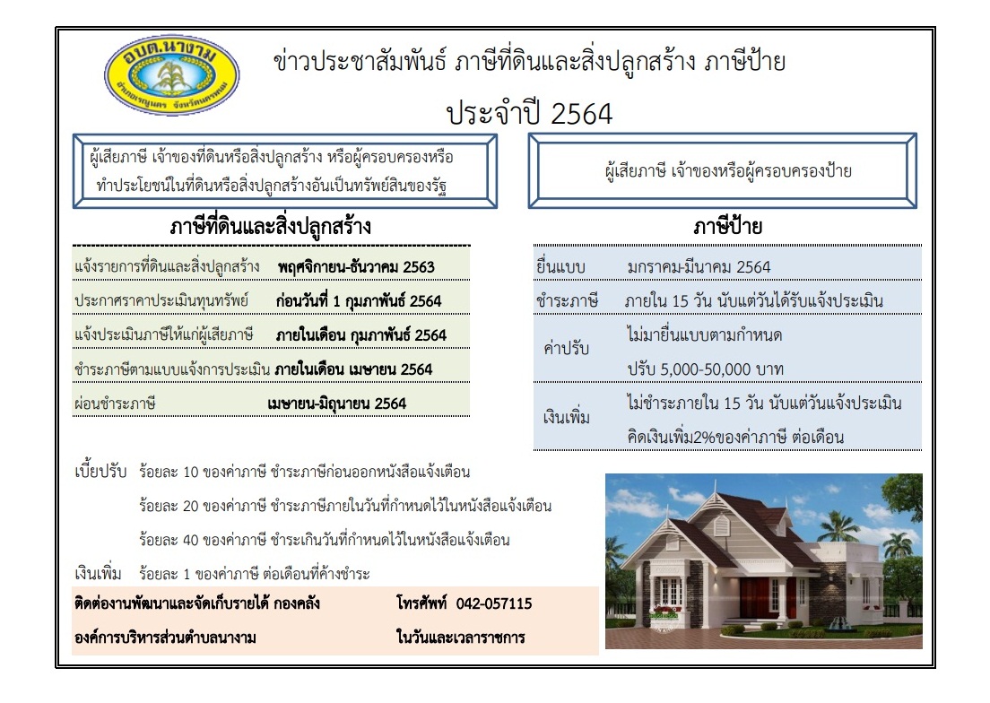 ชื่อเรื่อง : ประชาสัมพันธ์ ภาษีที่ดินและสิ่งปลูกสร้าง ภาษีป้าย ประจำปี 2564