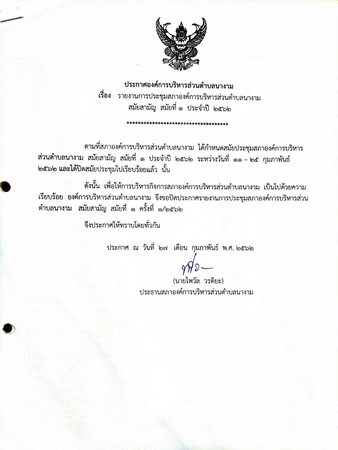 รายงานการประชุมสภาองค์การบริหารส่วนตำบลนางาม สมัยสามัญ สมัยที่ 1 ประจำปี 2562