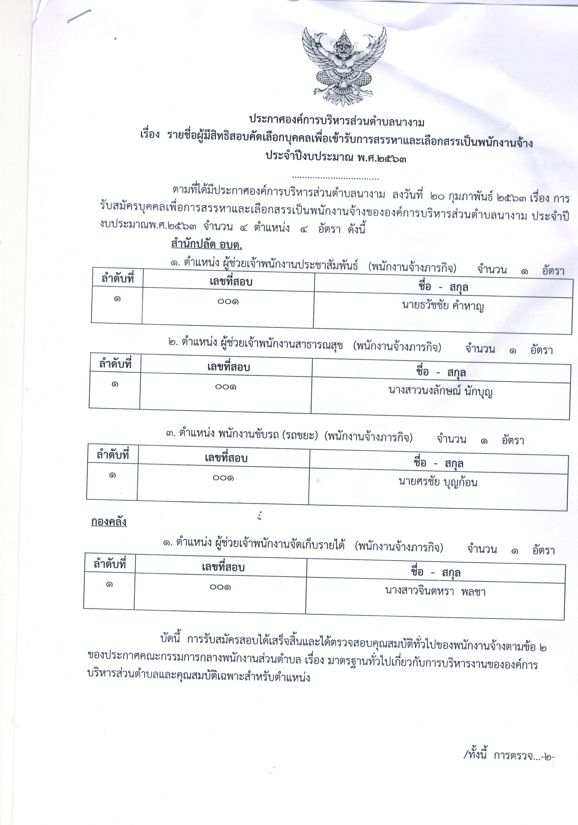 ชื่อเรื่อง : ประกาศรายชื่อผู้มีสิทธิเข้ารับการสรรหาและเลือกสรรพนักงาน ประจำปี 2563