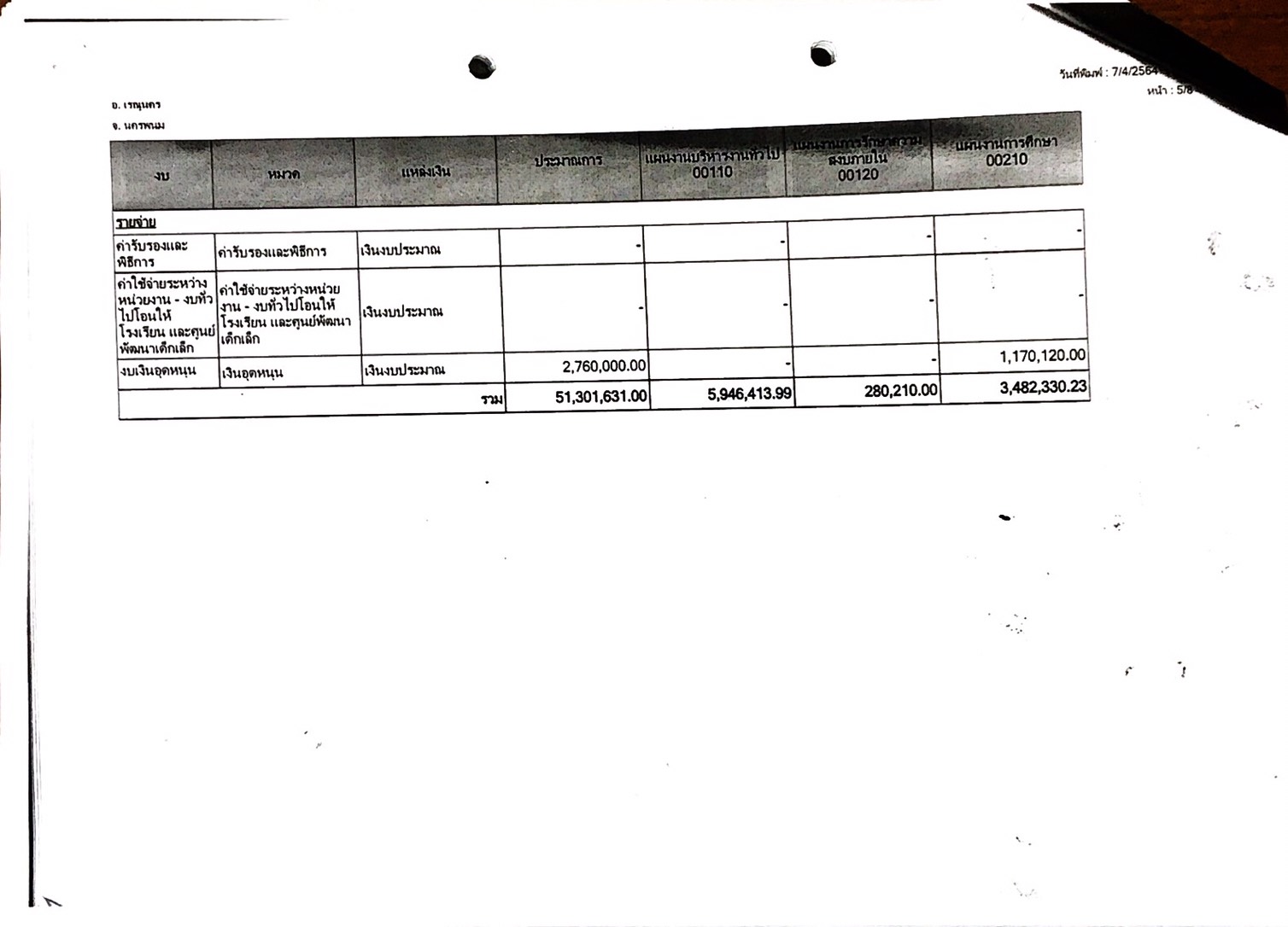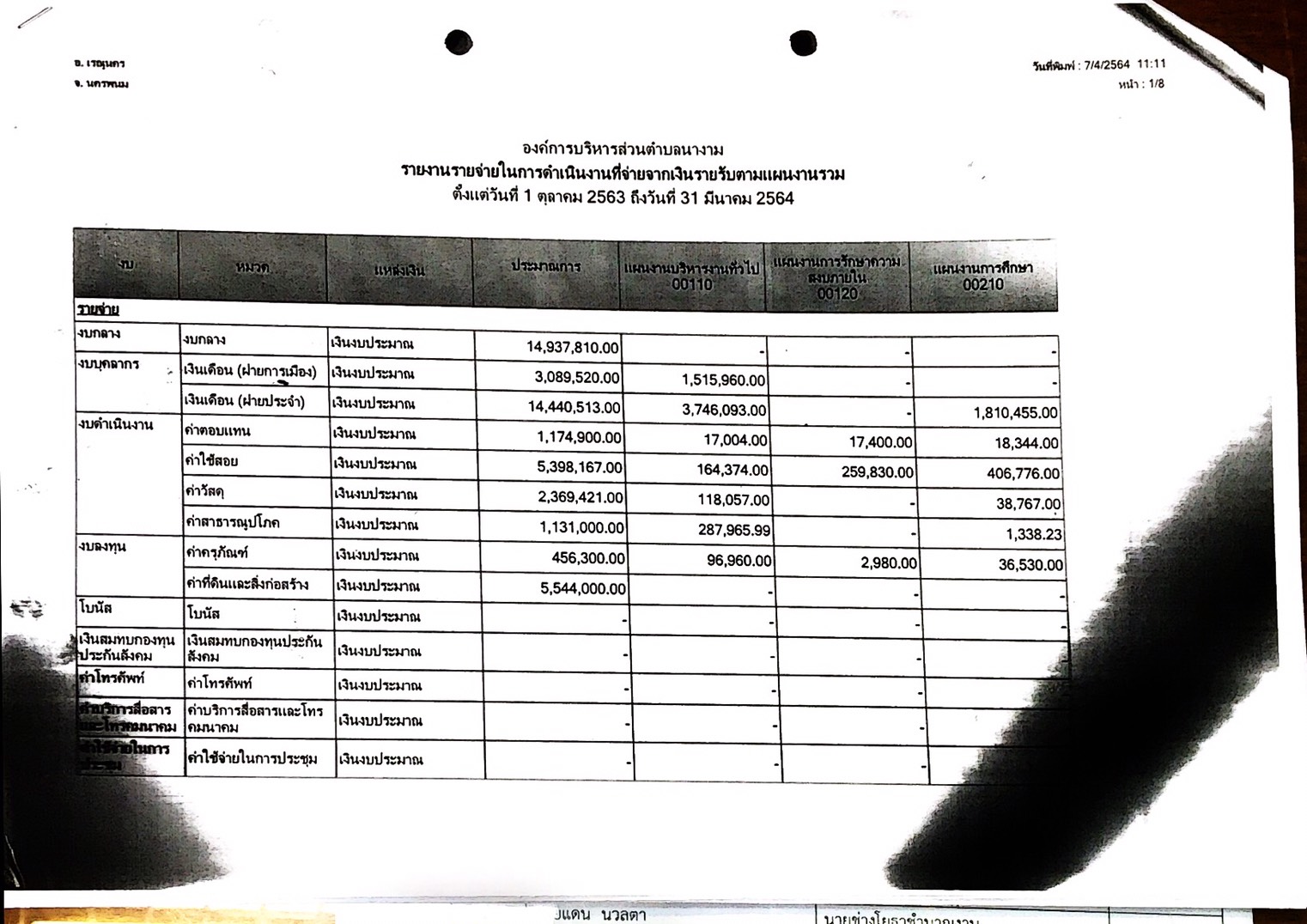ชื่อเรื่อง : รายงานการติดตามการใช้จ่ายงบประมาณ ประจำปีงบประมาณ พ.ศ. 2564 รอบ 6 เดือน