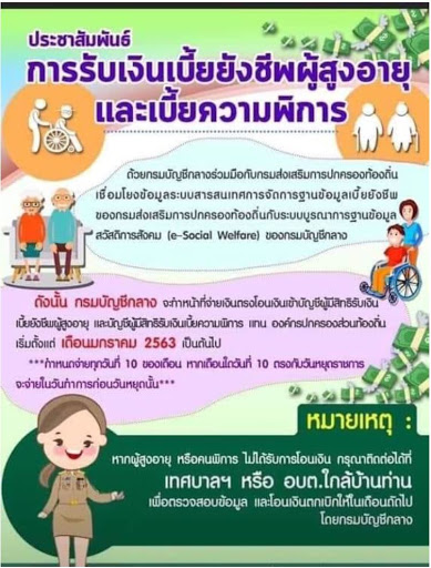 ประชาสัมพันธ์การรับเงินเบี้ยยังชีพผู้สูงอายุและเบี้ยความพิการ
