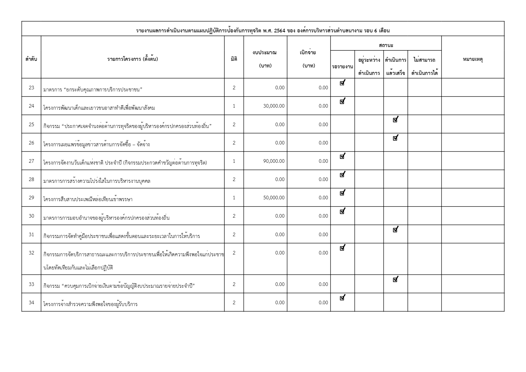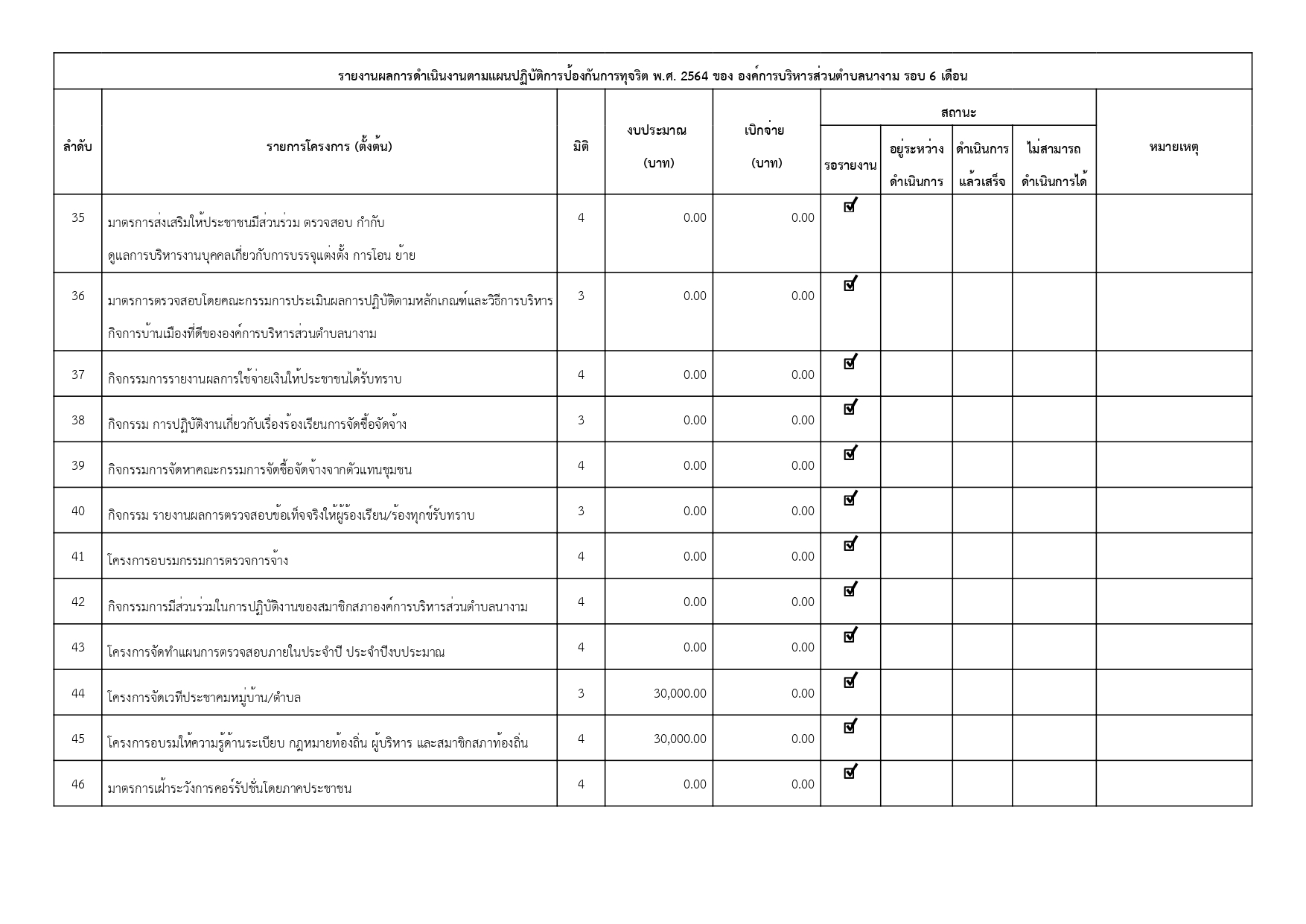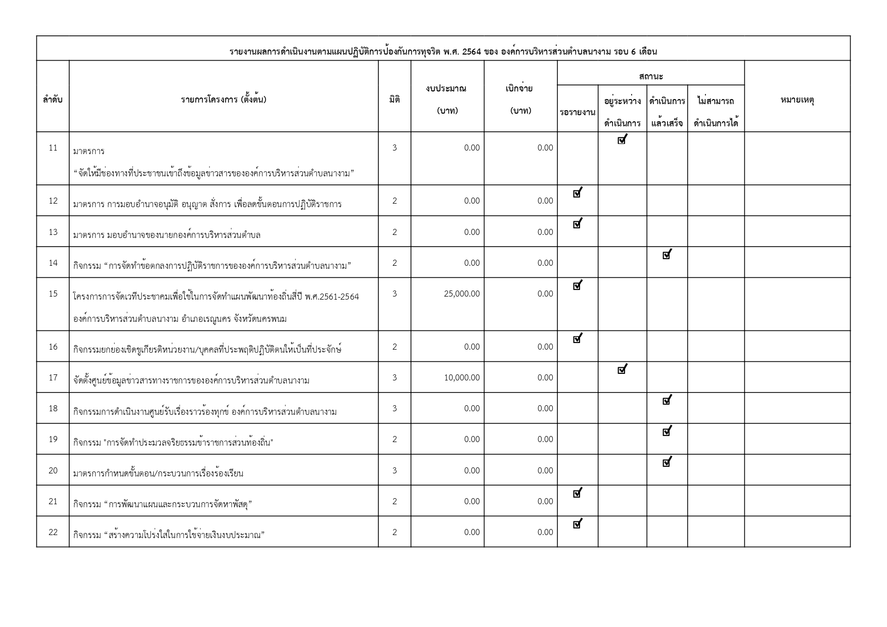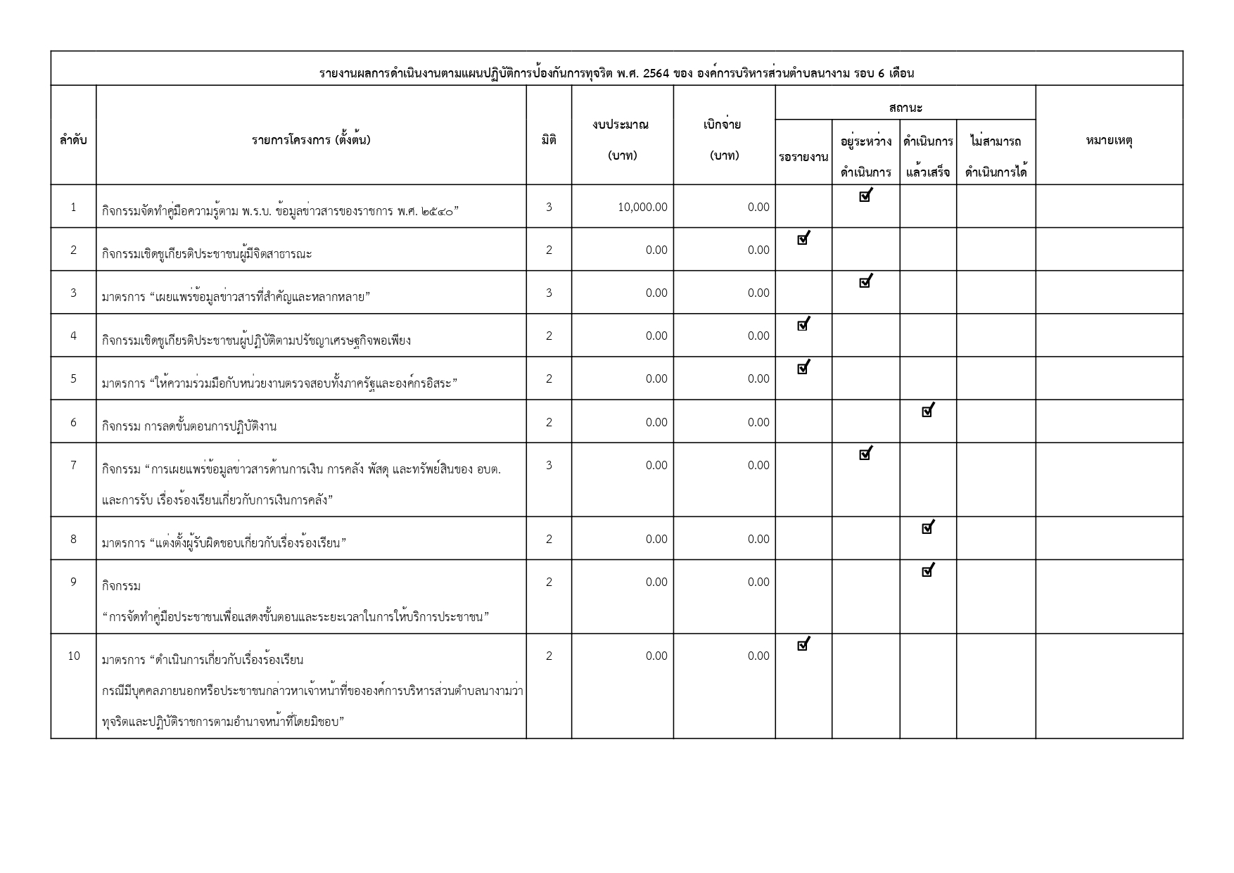 รายงานการกำกับติดตามการดำเนินการป้องกันการทุจริต รอบ 6 เดือน ประจำปีงบประมาณ พ.ศ. 2564
