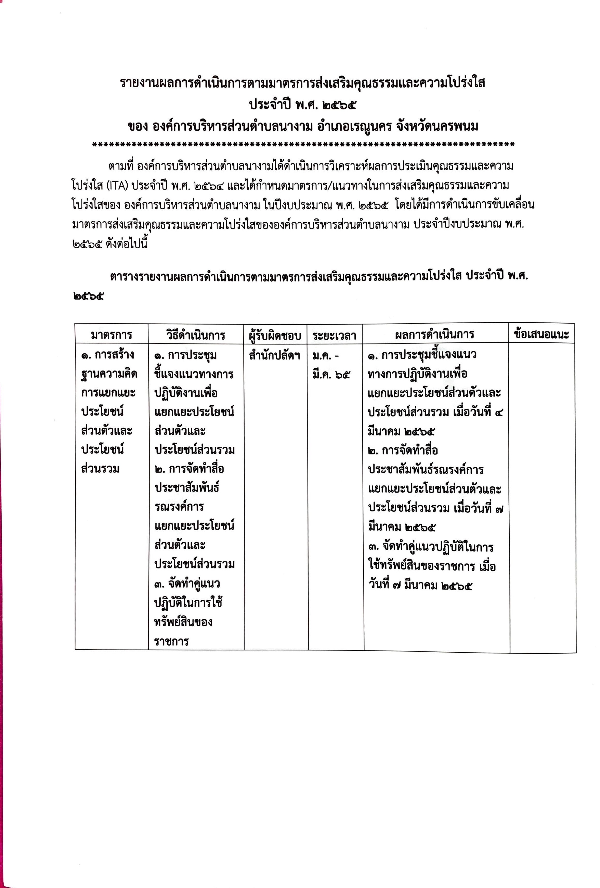 รายงานผลการดำเนินการมาตรการส่งเสริมคุณธรรมและความโปร่งใส ประจำปี 2565