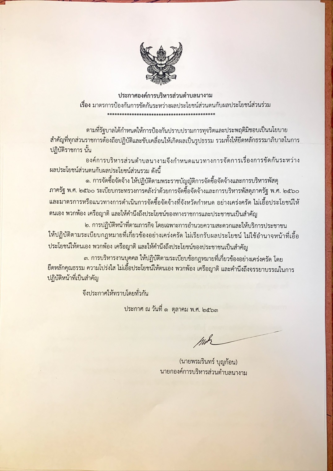 มาตรการป้องกันการขัดกันระหว่างผลประโยชน์ส่วนตนกับผลประโยชน์ส่วนร่วม