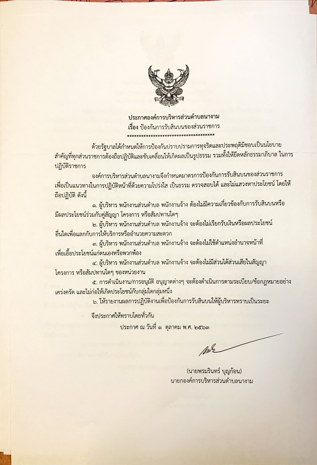 ชื่อเรื่อง : มาตรการป้องกันการรับสินบน