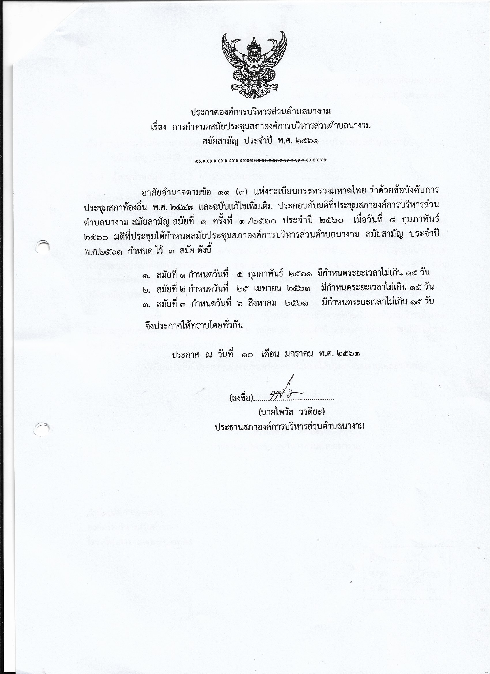 ชื่อเรื่อง : เรื่อง การกำหนดสมัยประชุมสภาองค์การบริหารส่วนตำบลนางาม สมัยสามัญ ประจำปี 2561