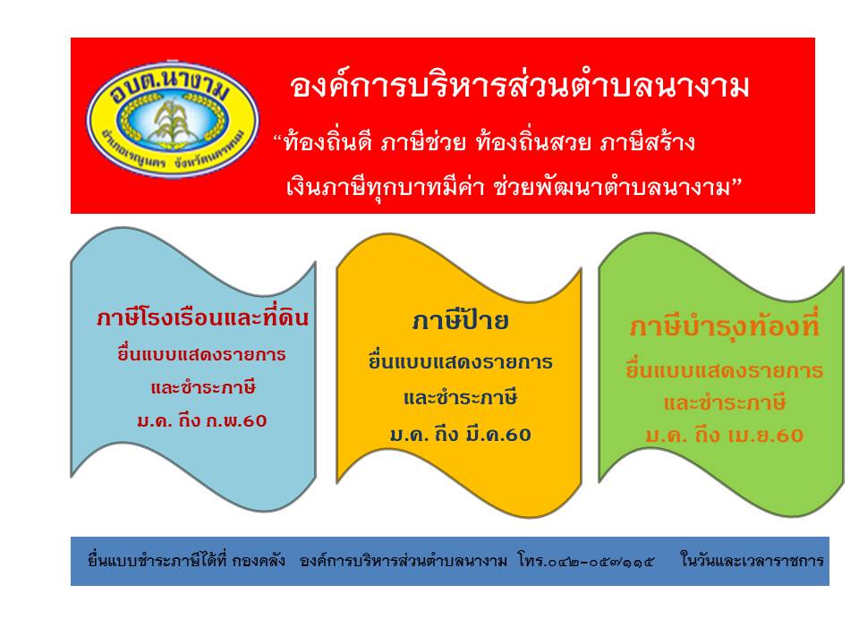 ประชาสัมพันธ์ การชำระภาษี ประจำปีงบประมาณ 2560
