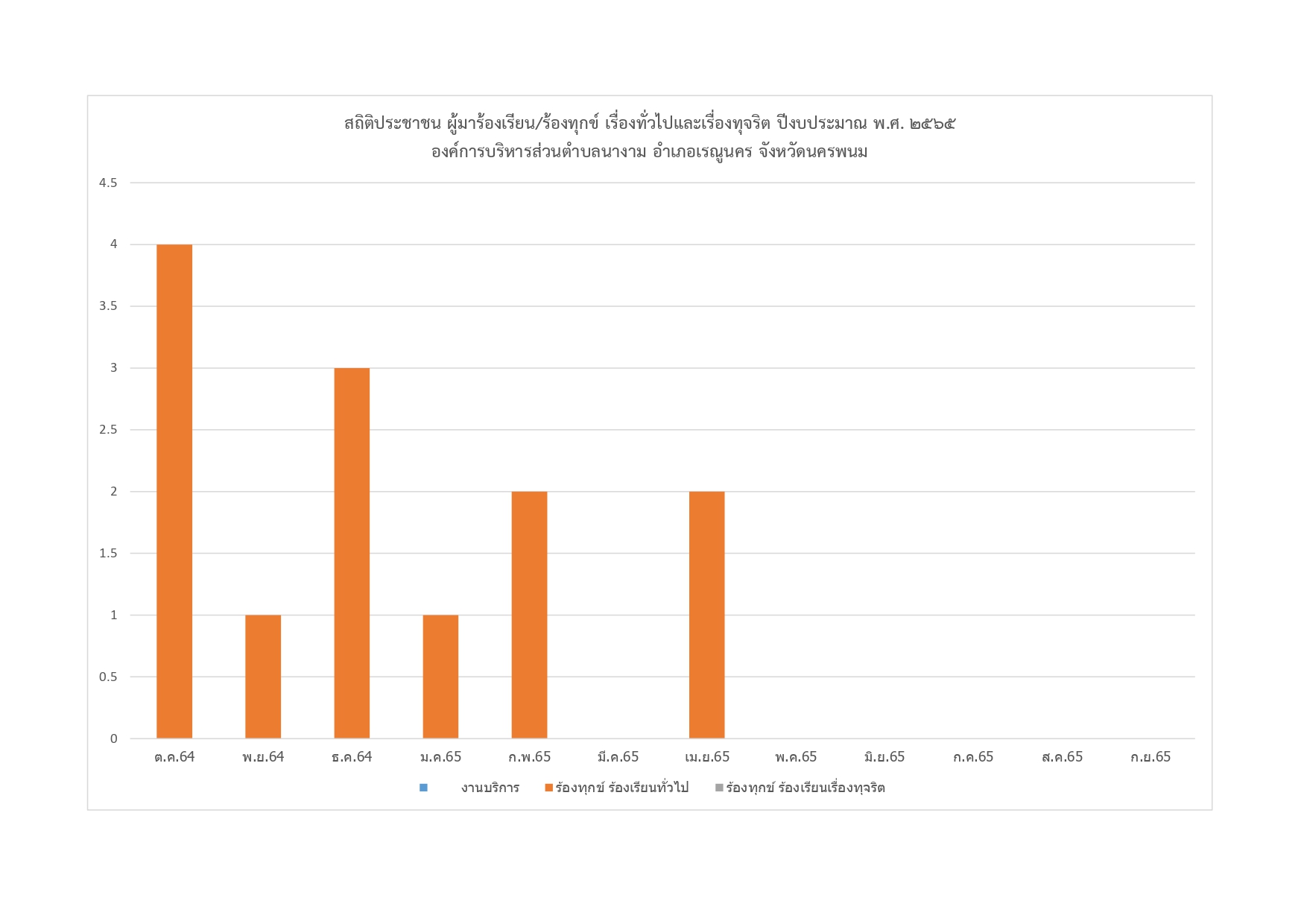 สถิติการร้องเรียน/ร้องทุกข์ เรื่องทั่วไปและเรื่องทุจริต ปีงบประมาณ พ.ศ. 2565