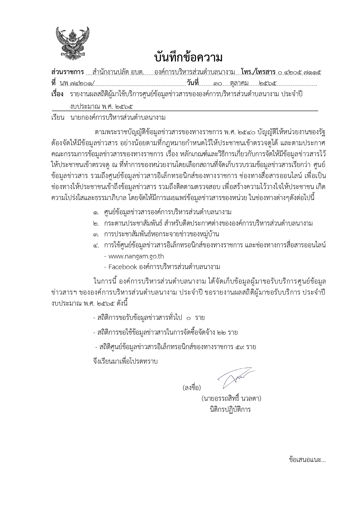 ชื่อเรื่อง : รายงานผลสถิติผู้มาใช้บริการศูนย์ข้อมูลข่าวสาร อบต.นางาม ปี 2565