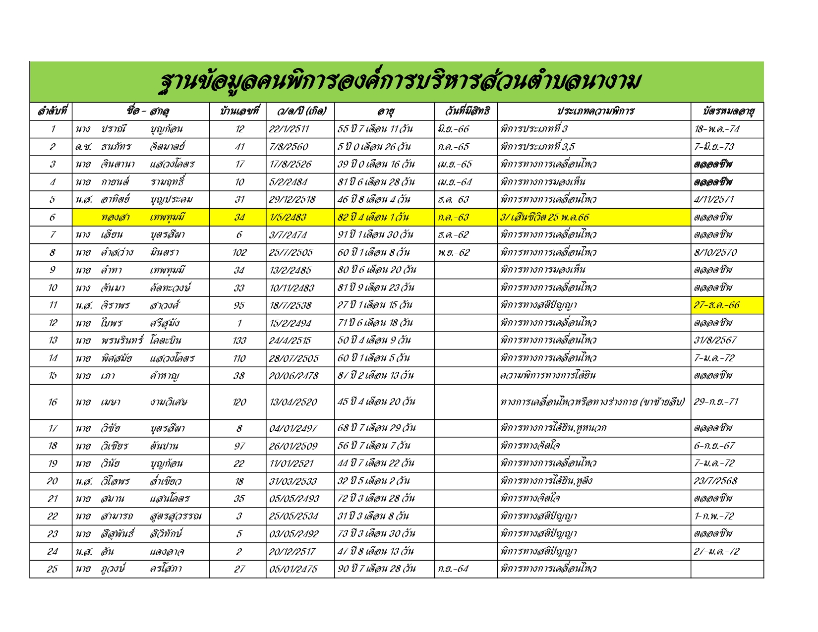 ชื่อเรื่อง : ฐานข้อมูลผู้พิการองค์การบริหารส่วนตำบลนางาม ประจำปี พ.ศ. 2565