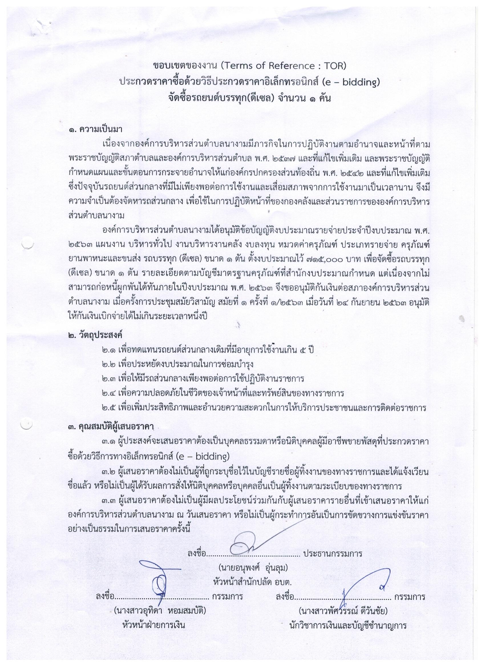 ขอบเขตของงาน การซื้อครุภัณฑ์ยานพาหนะและขนส่ง รายการ รถบรรทุก(ดีเซล) ขนาด ๑ ตัน