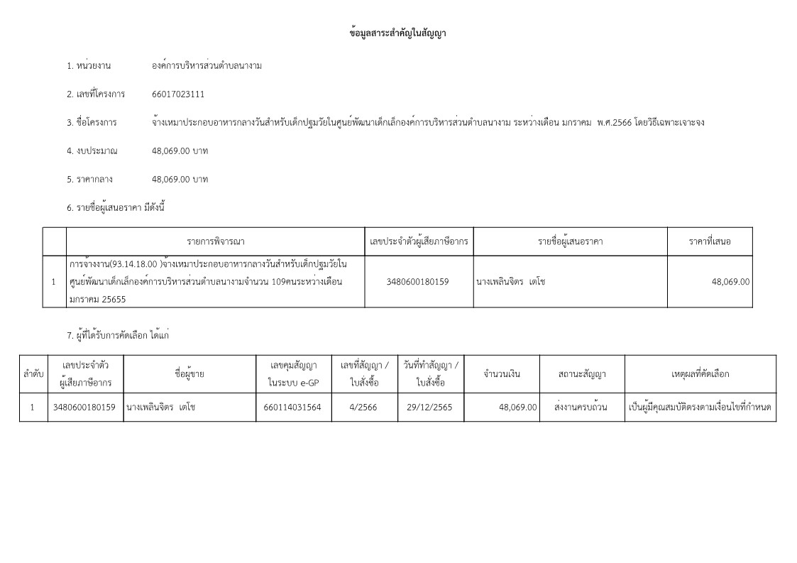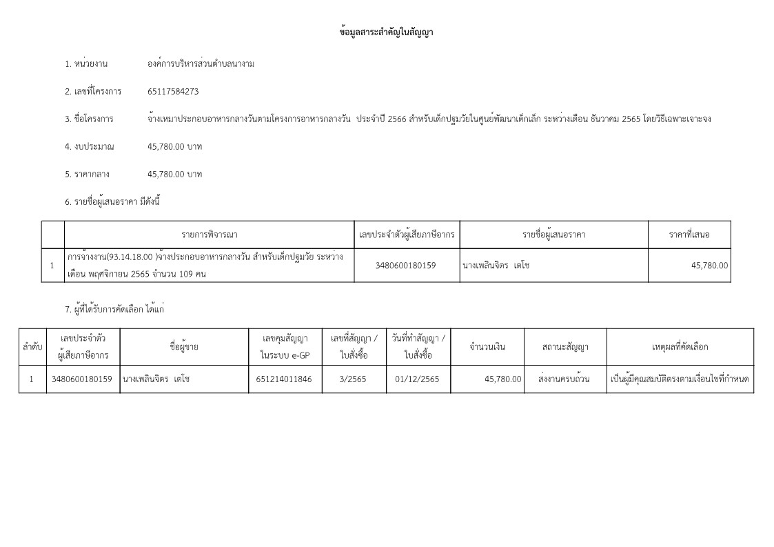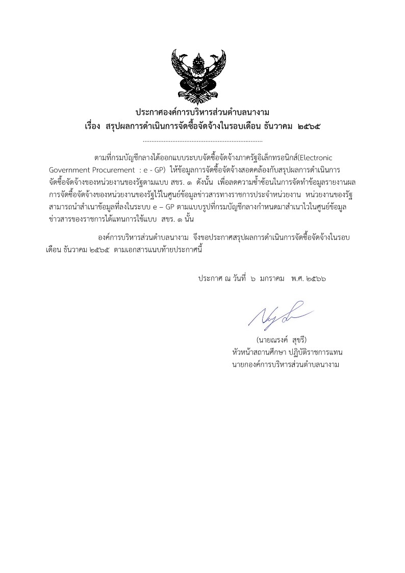 สรุปผลการดำเนินการจัดซื้อจัดจ้างศูนย์พัฒนาเด็กเล็กองค์การบริหารส่วนตำบลนางามเดือน ธันวาคม 2565