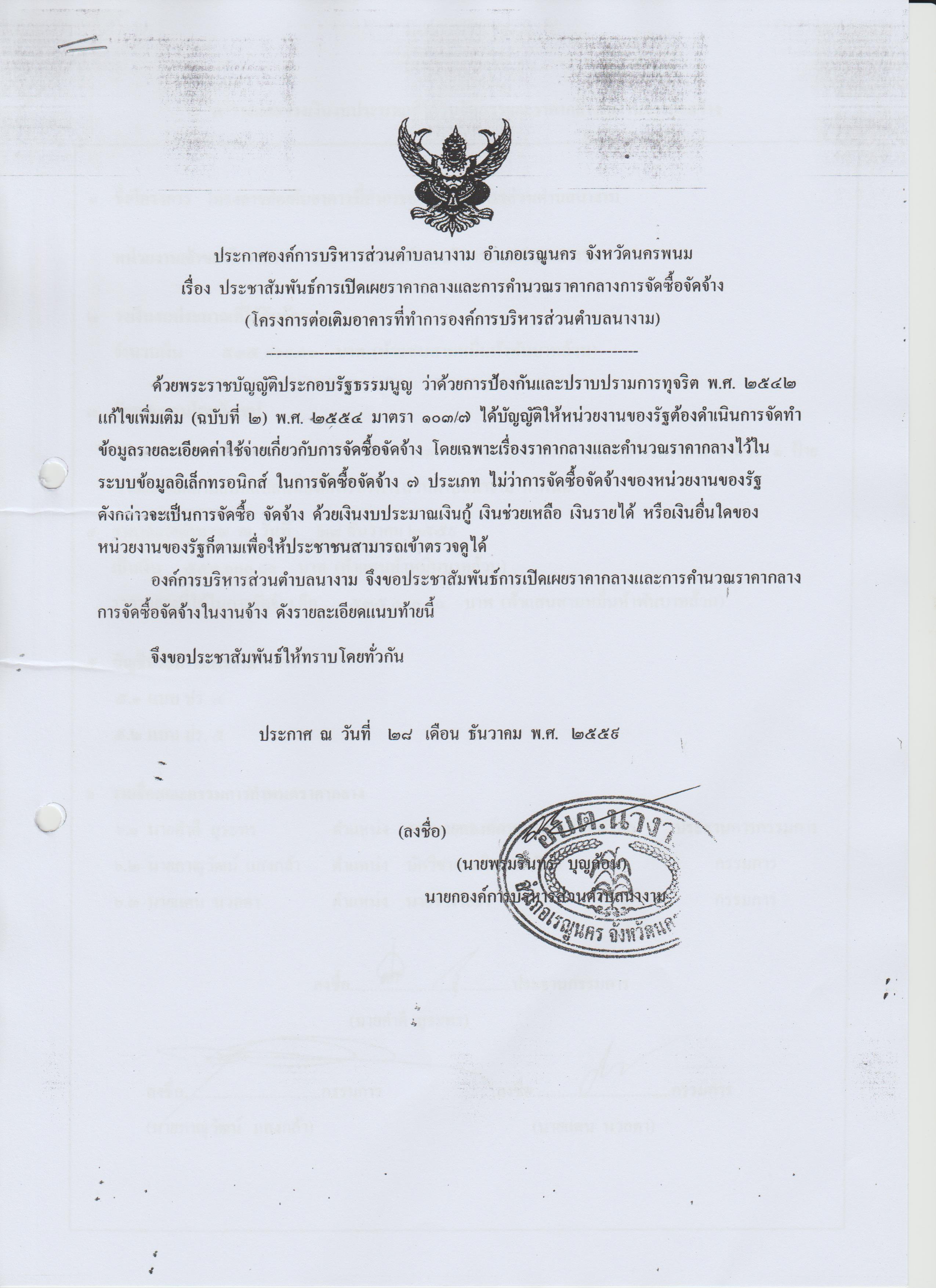 ชื่อเรื่อง : ประชาสัมพันธ์การเปิดเผยราคากลาง(ต่อเติมอาคาร อบต.นางาม)