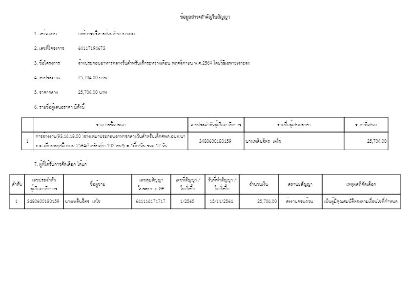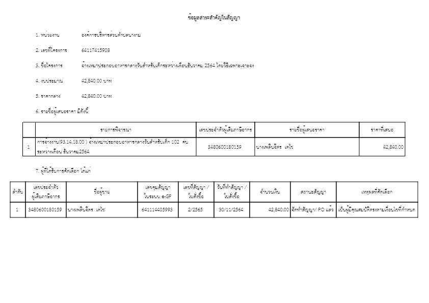 สรุปผลการดำเนินการจัดซื้อจัดจ้างศูนย์พัฒนาเด็กเล็กองค์การบริหารส่วนตำบลนางามเดือน พฤศจิกายน 2564