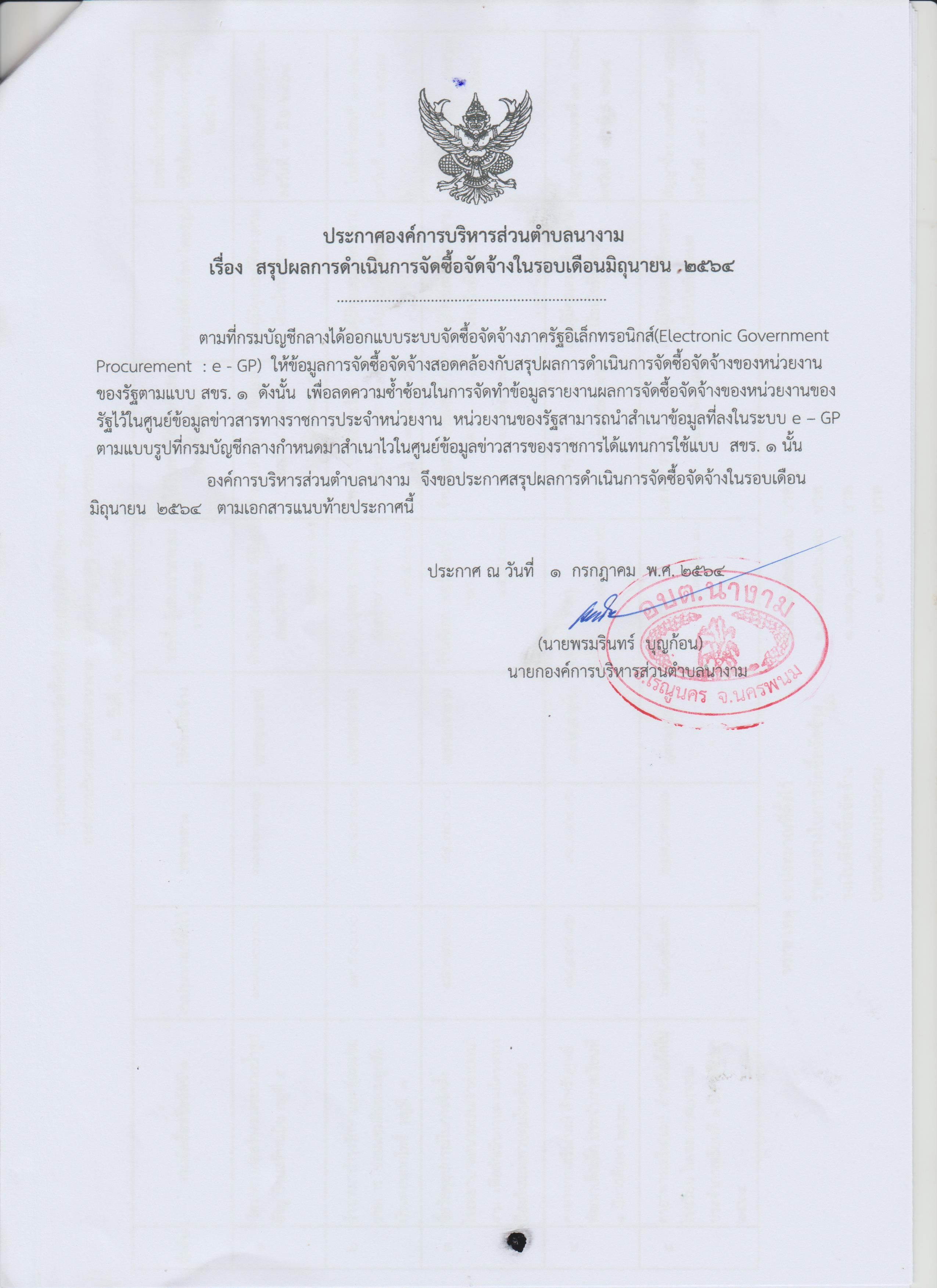 สรุปผลการดำเนินงานจัดซื้อจัดจ้างในรอบเดือนมิถุนายน2564