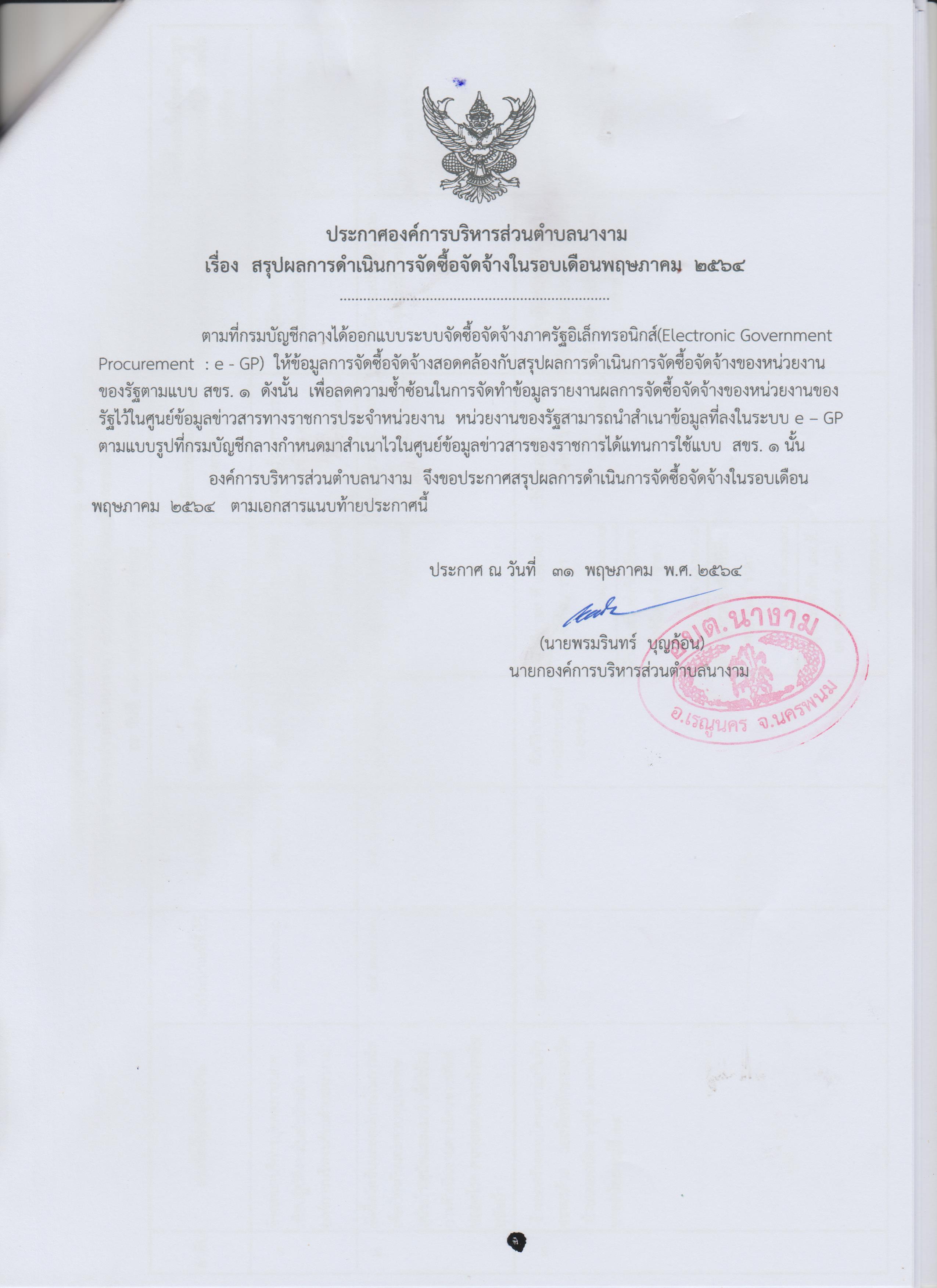 ชื่อเรื่อง : สรุปผลการจัดซื้อจัดจ้างในรอบเดือนพฤษภาคม 2564