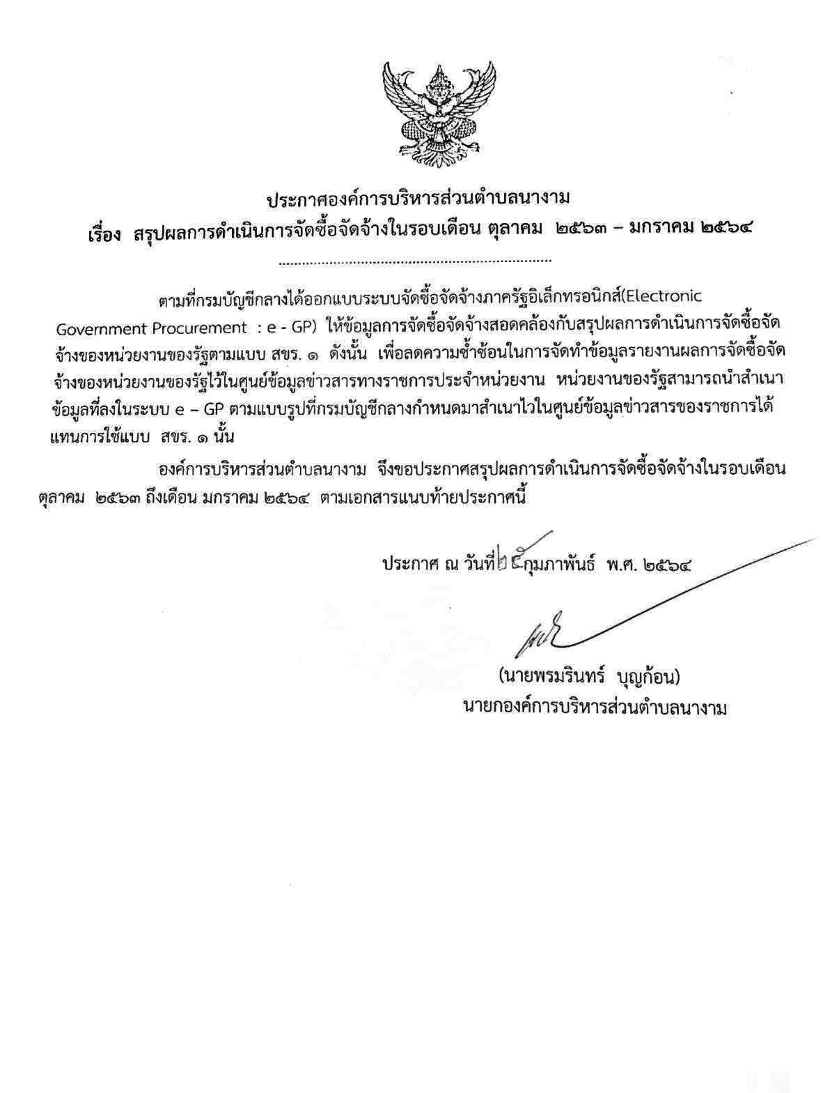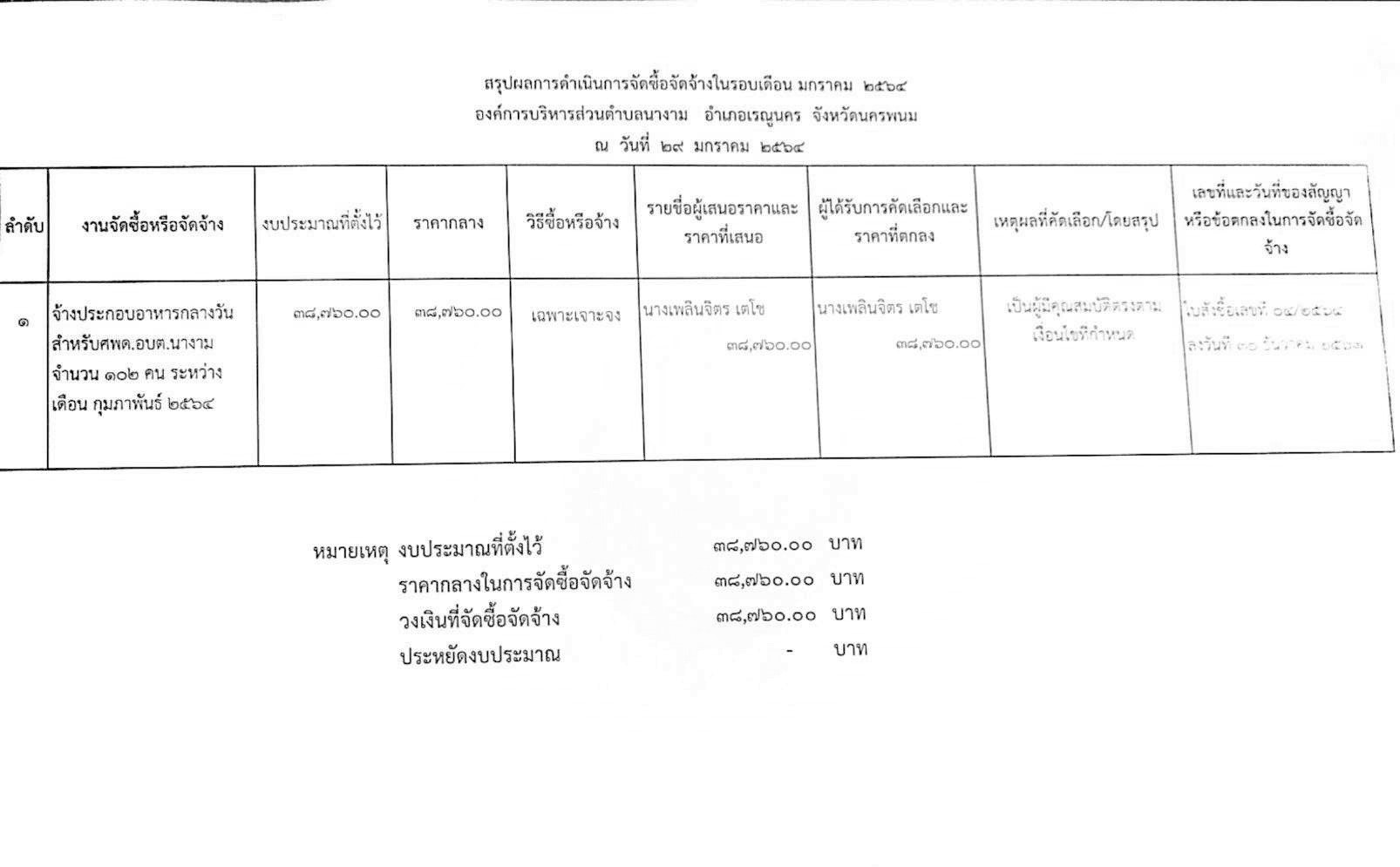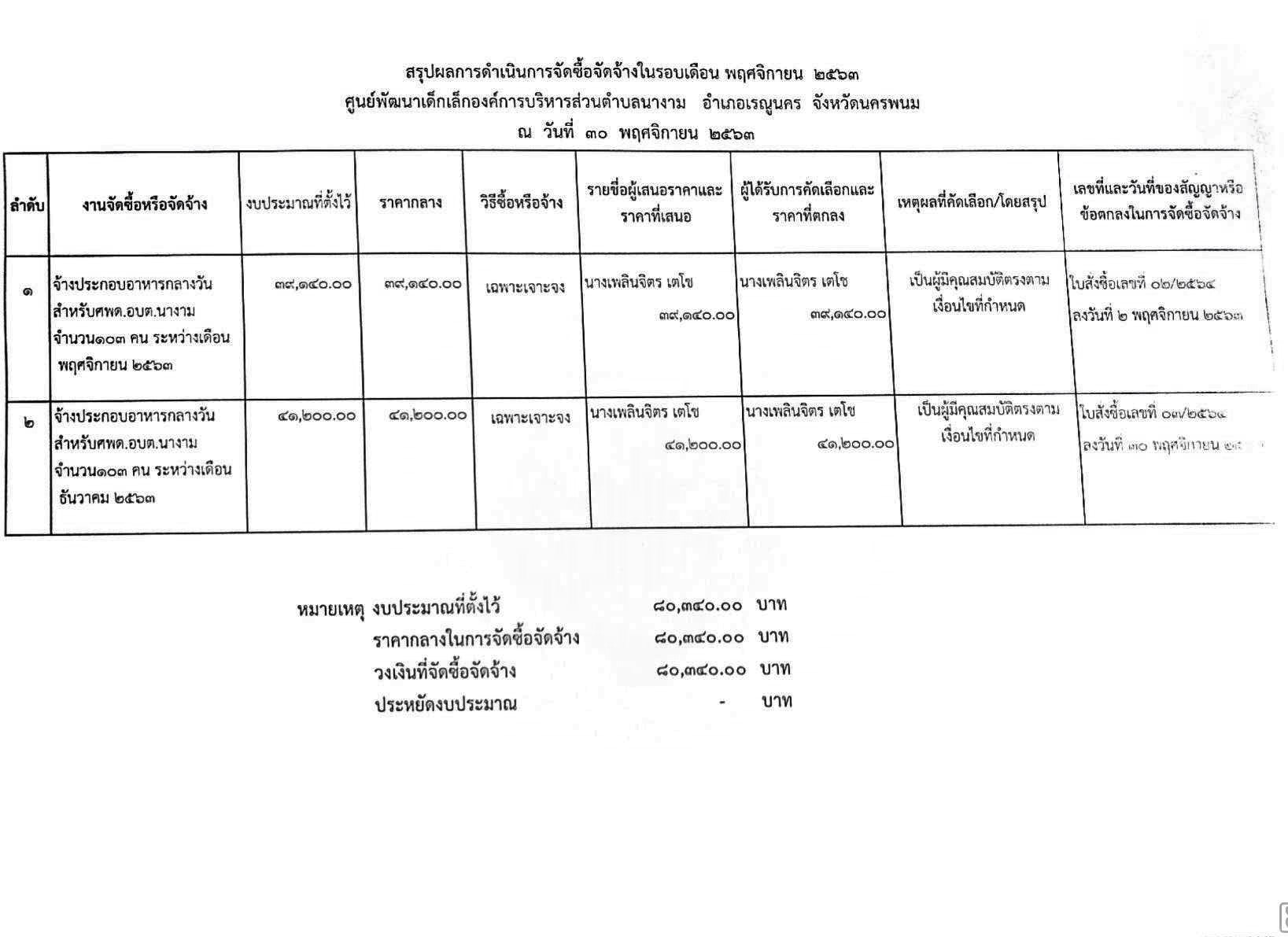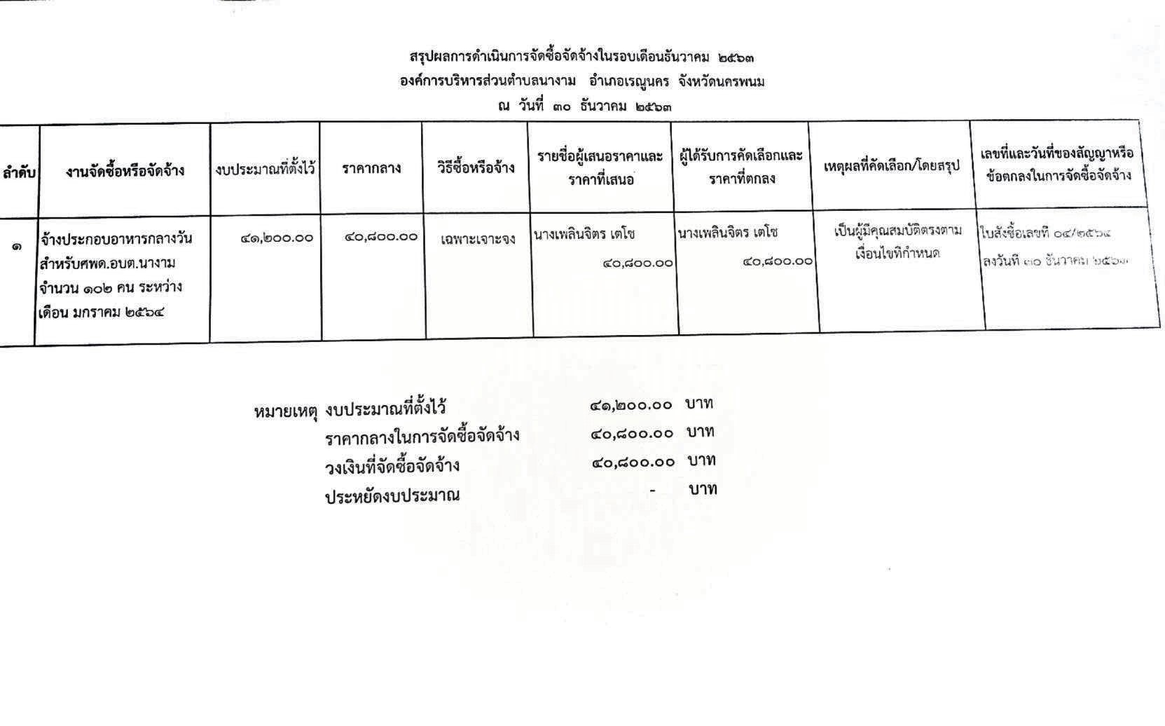 สรุปผลการดำเนินการจัดซื้อจัดจ้างศูนย์พัฒนาเด็กเล็กองค์การบริหารส่วนตำบลนางามระหว่างเดือนตุลาคม 2563-มกราคม2564