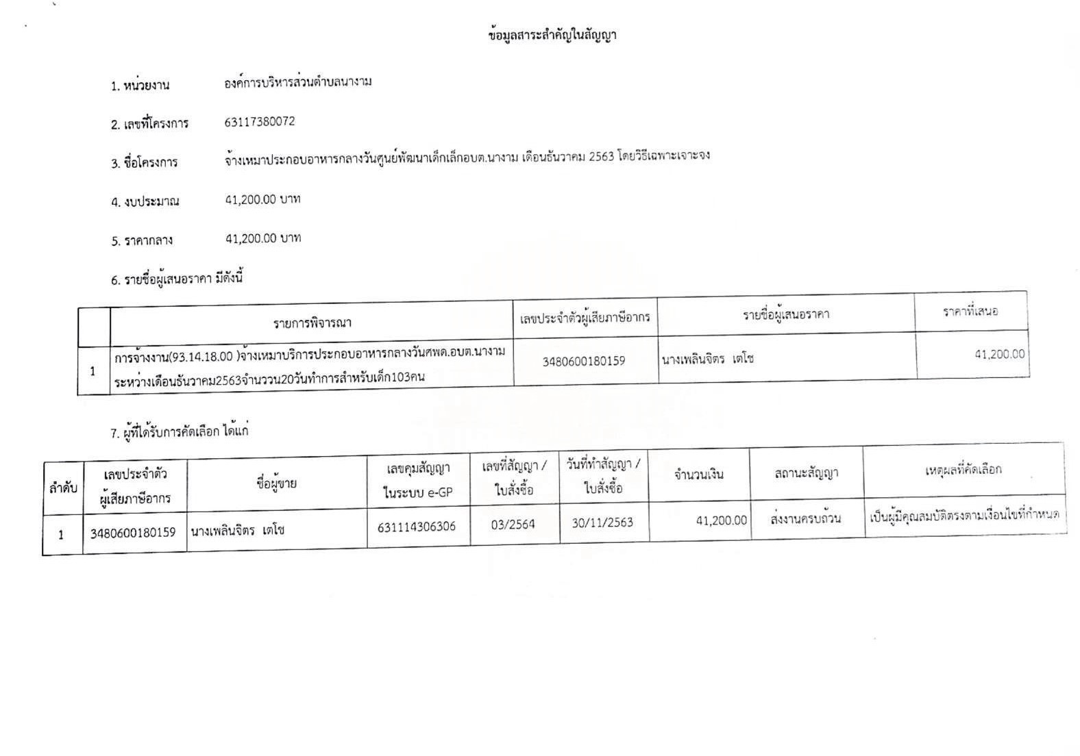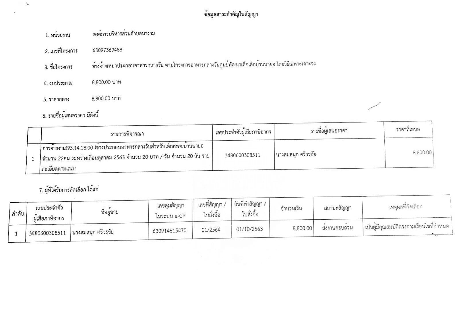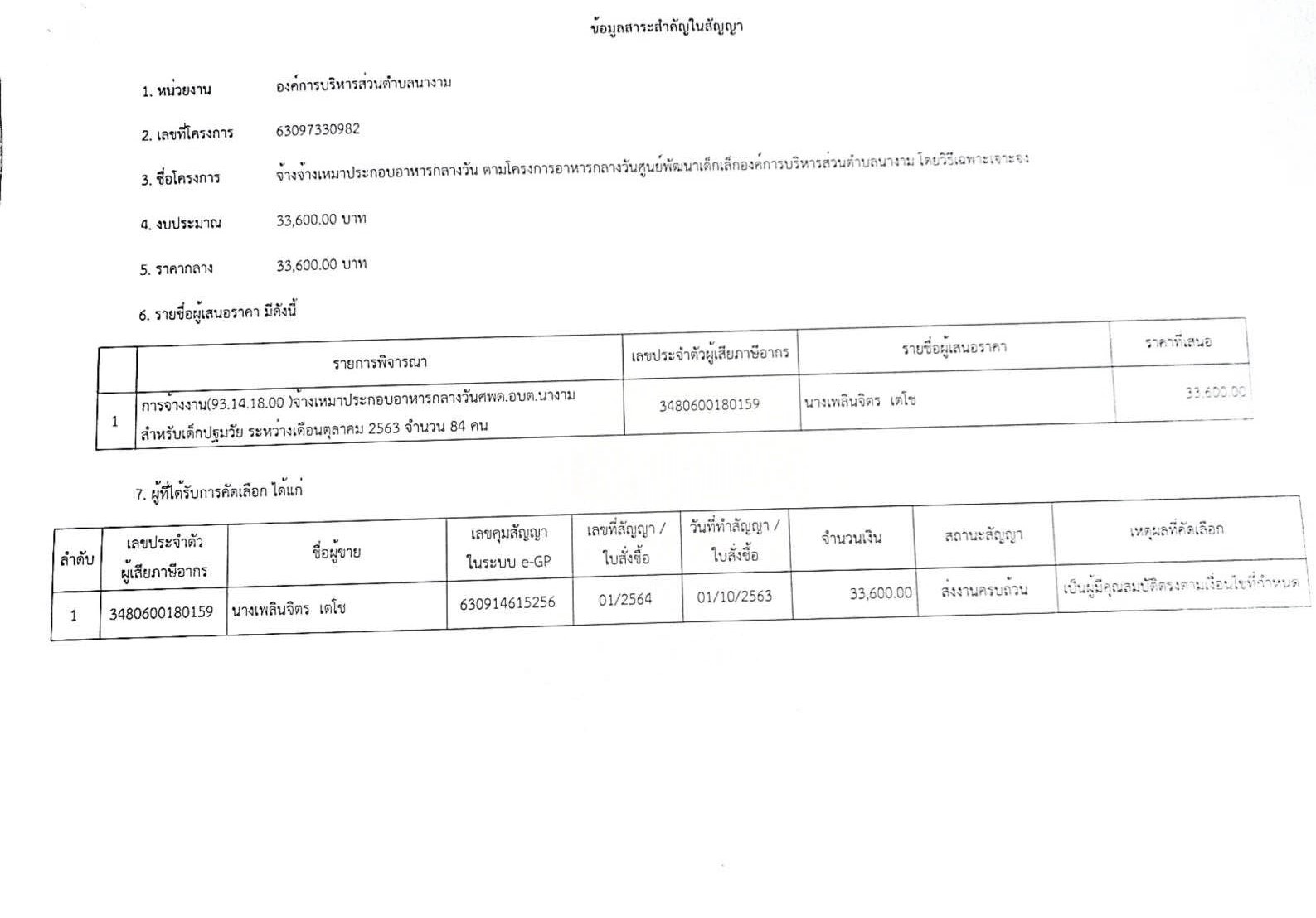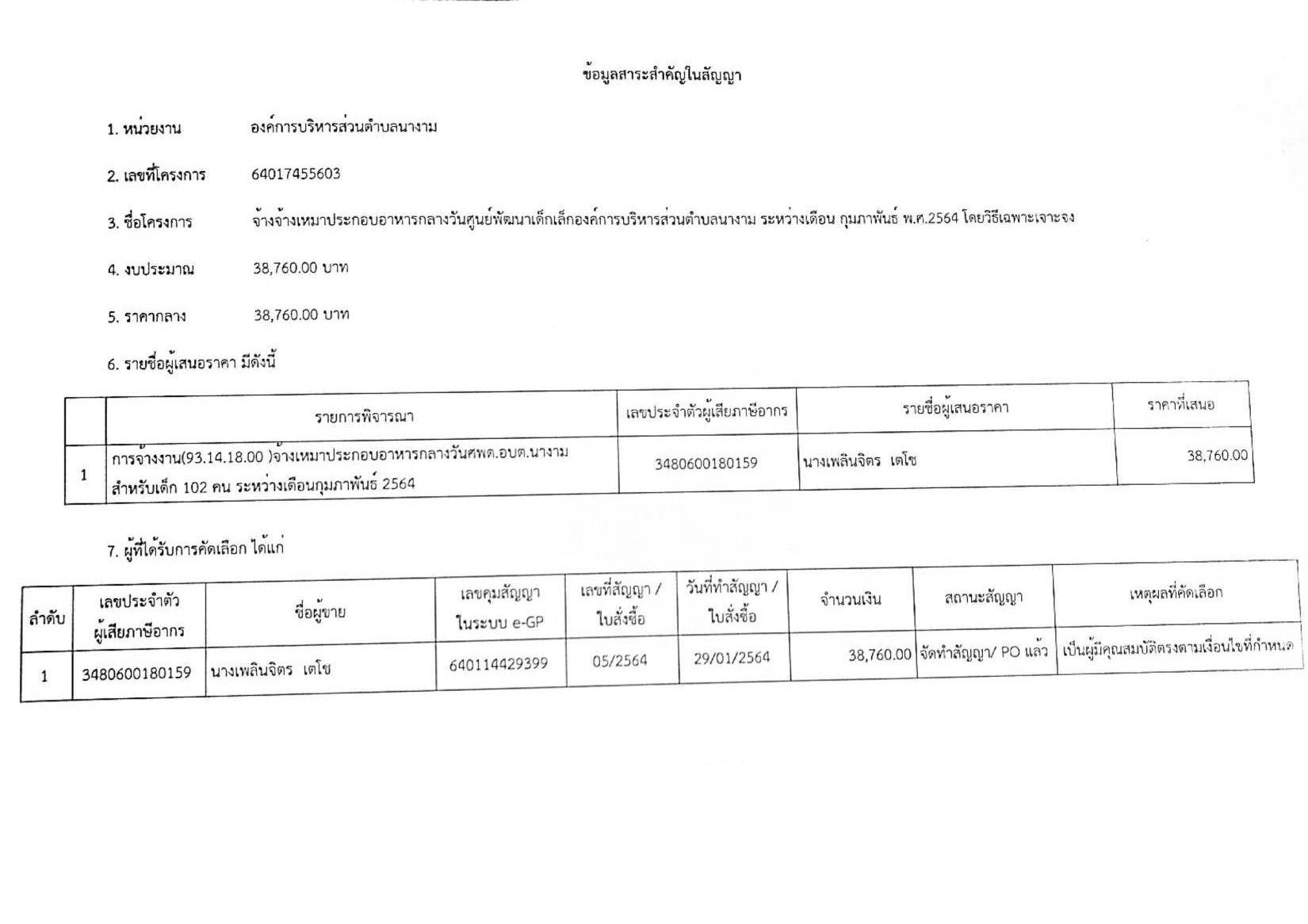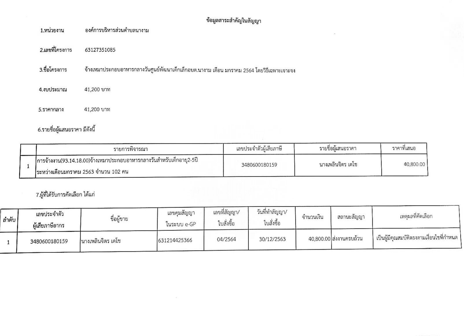 สรุปผลการดำเนินการจัดซื้อจัดจ้างศูนย์พัฒนาเด็กเล็กองค์การบริหารส่วนตำบลนางามระหว่างเดือนตุลาคม 2563-มกราคม2564