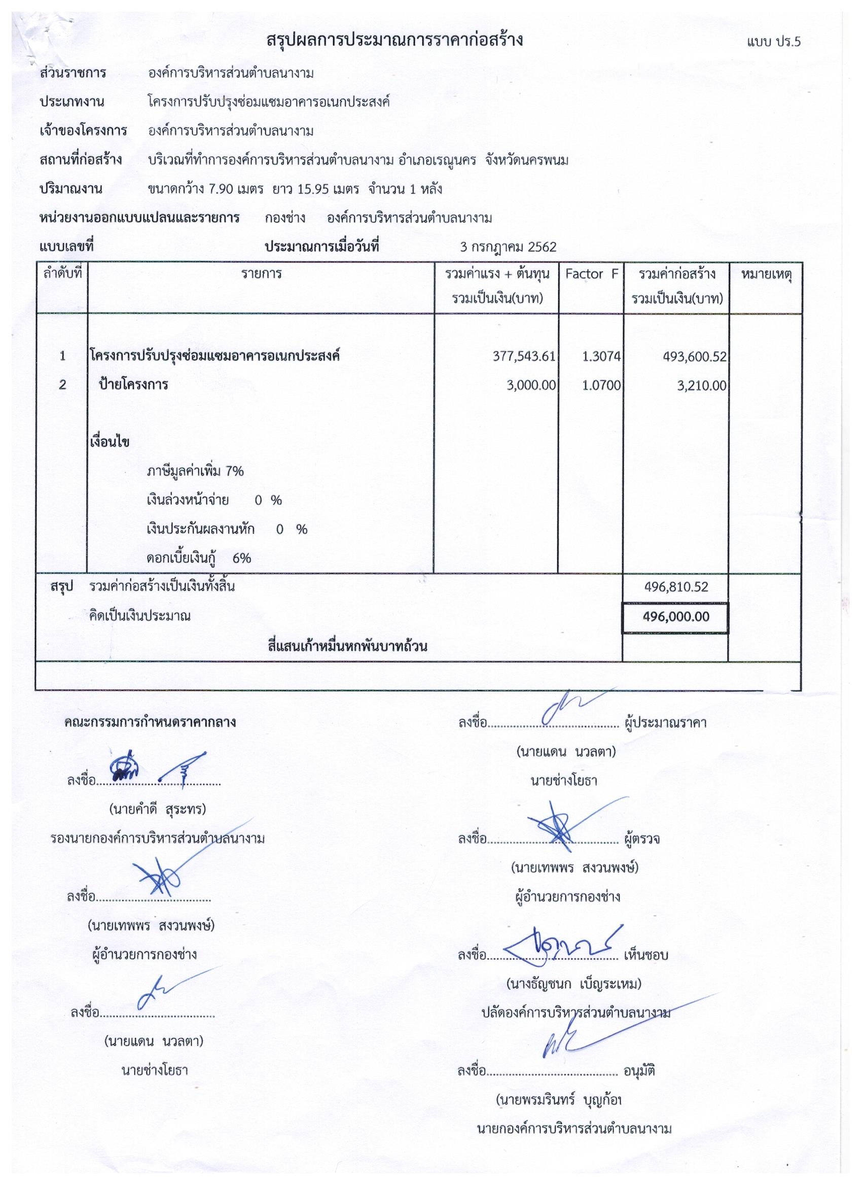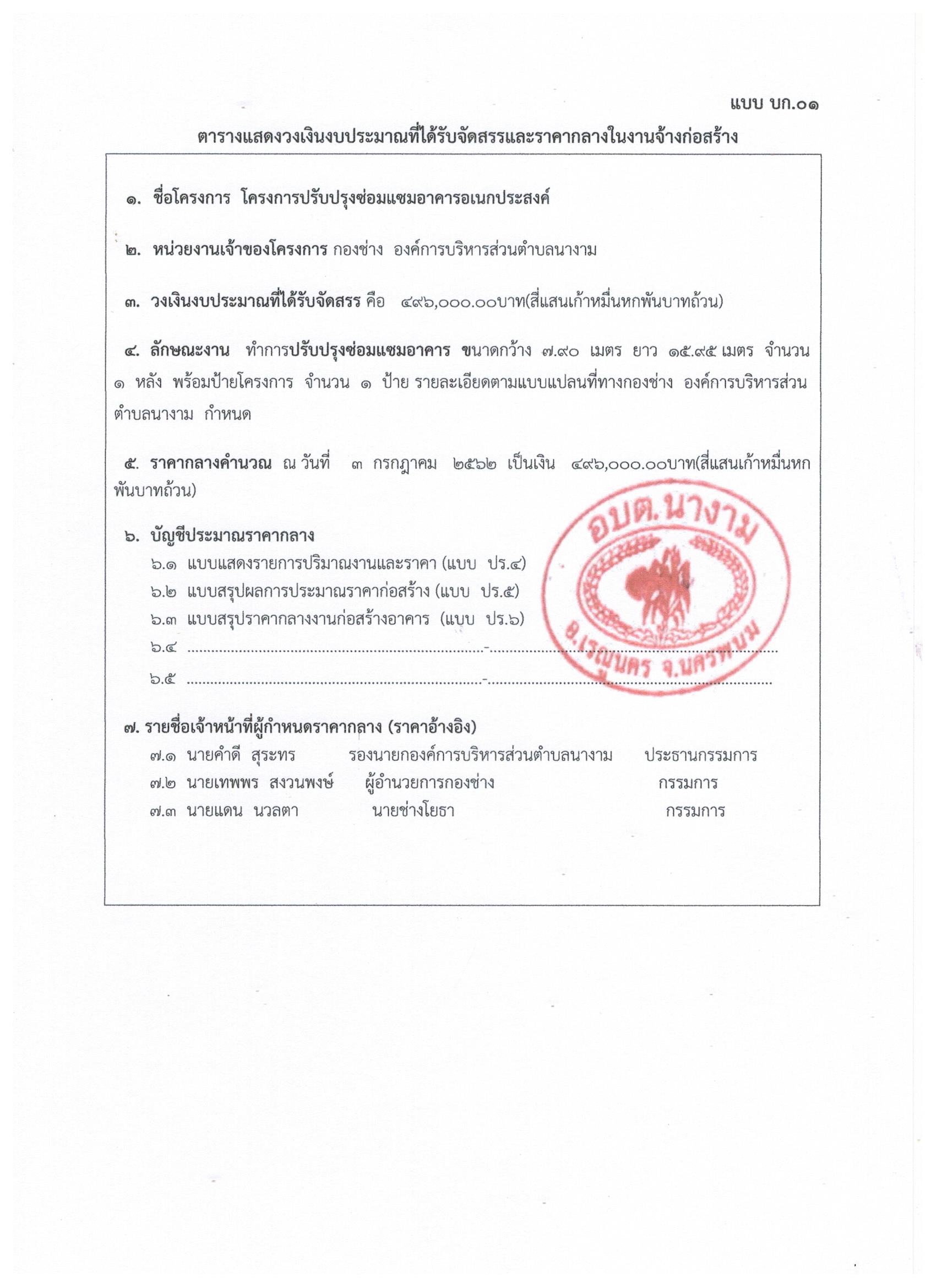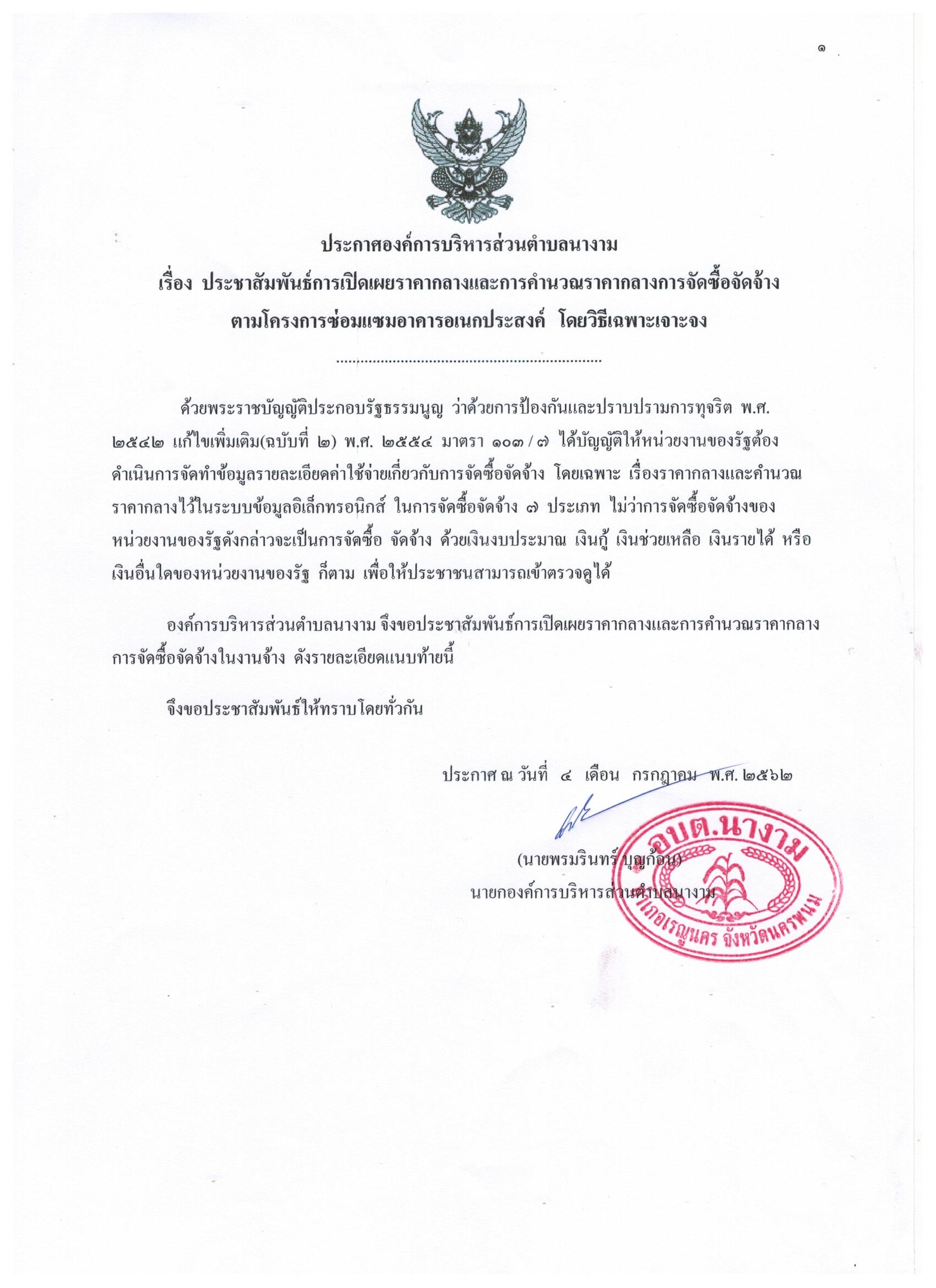 ประชาสัมพันธ์การเปิดเผยราคากลางตามโครงการซ่อมแซมอาคารอเนกประสงค์ โดยวิธีเฉพาะเจาะจง