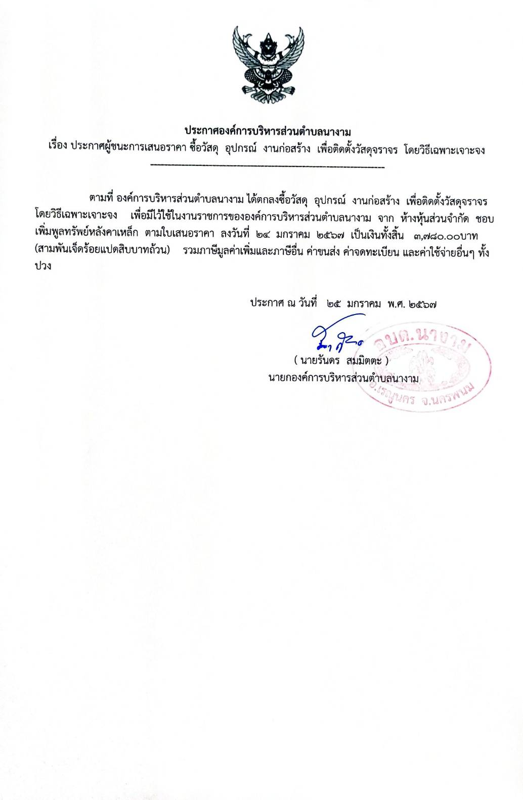 ชื่อเรื่อง : ประกาศผู้ชนะการเสนอราคา ซื้อวัสดุ อุปกรณ์ งานก่อสร้าง เพื่อติดตั้งวัสดุจราจร โดยวิธีเฉพาะเจาะจง