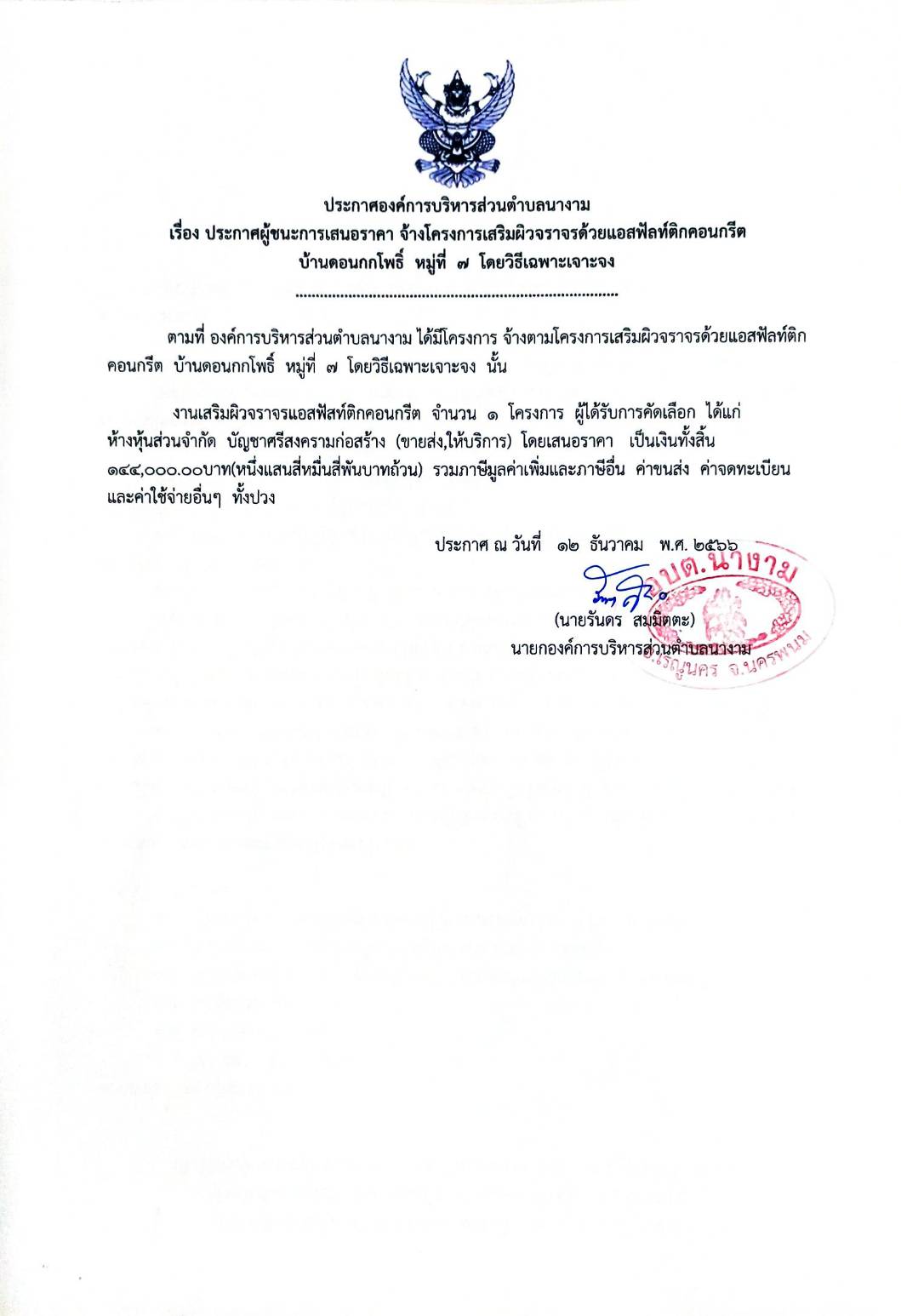 ชื่อเรื่อง : ประกาศผู้ชนะการเสนอราคา จ้างโครงการเสริมผิวจราจรด้วยแอสฟัลท์ติกคอนกรีต บ้านดอนกกโพธิ์ หมู่ที่ ๗ โดยวิธีเฉพาะเจาะจง