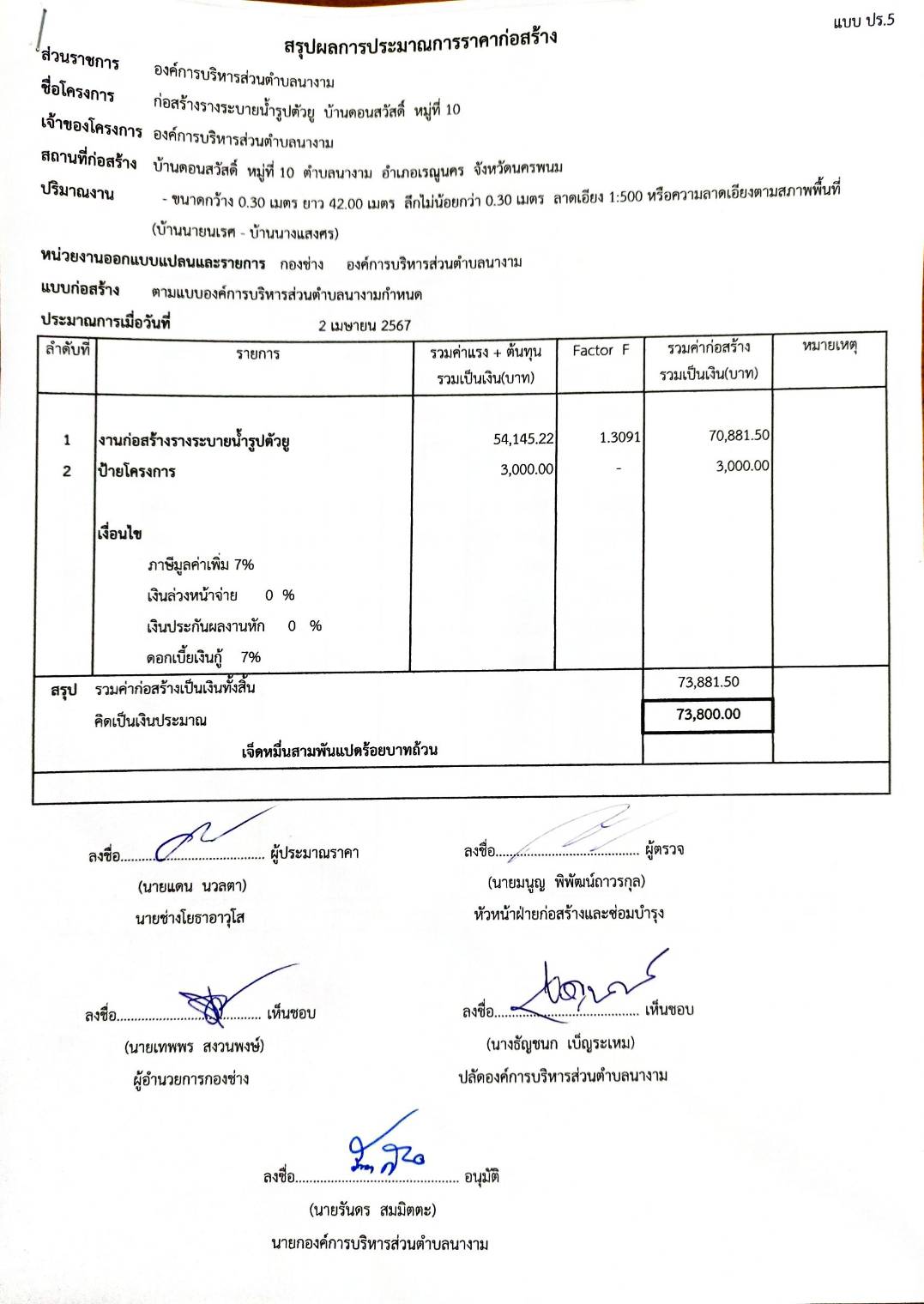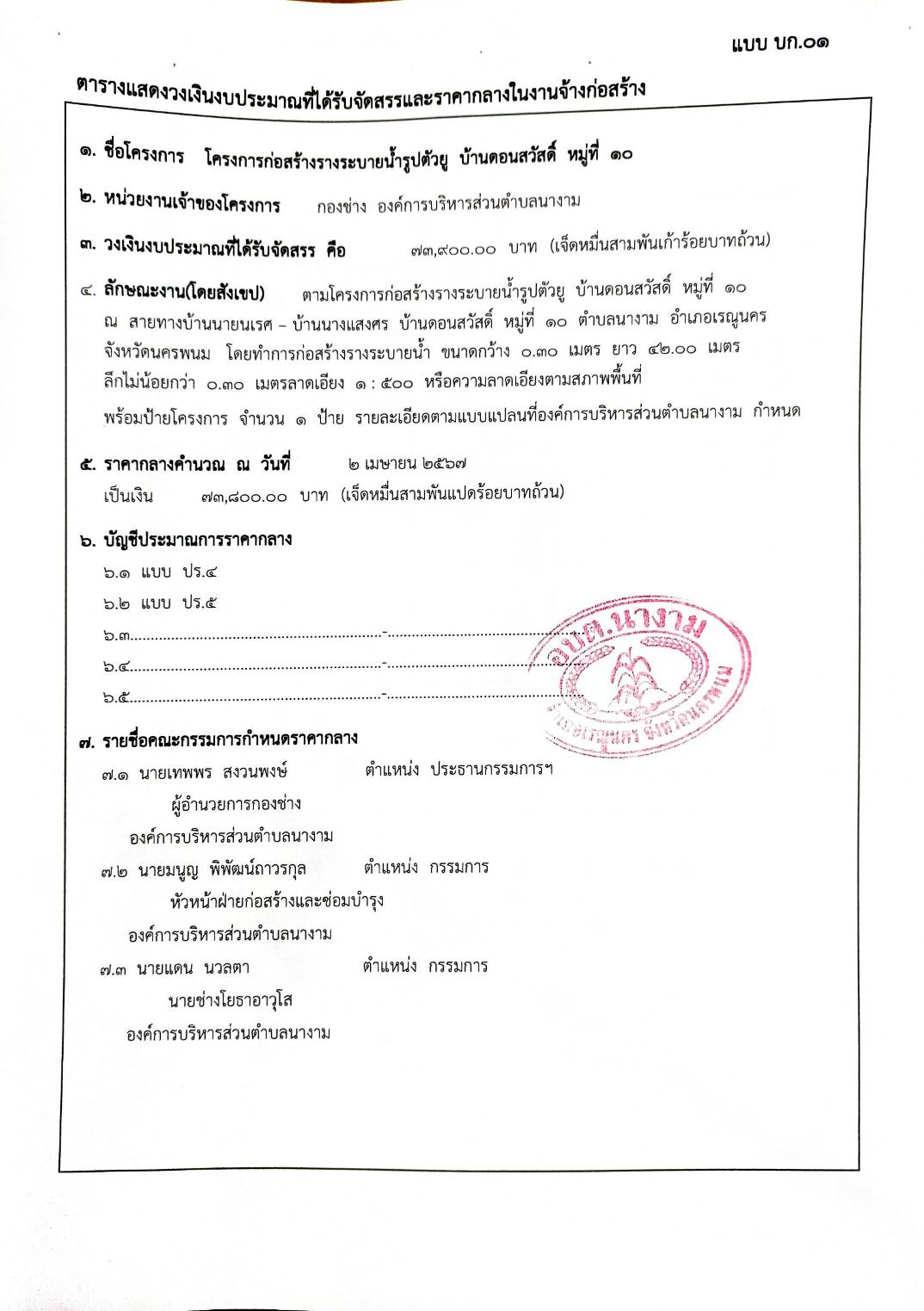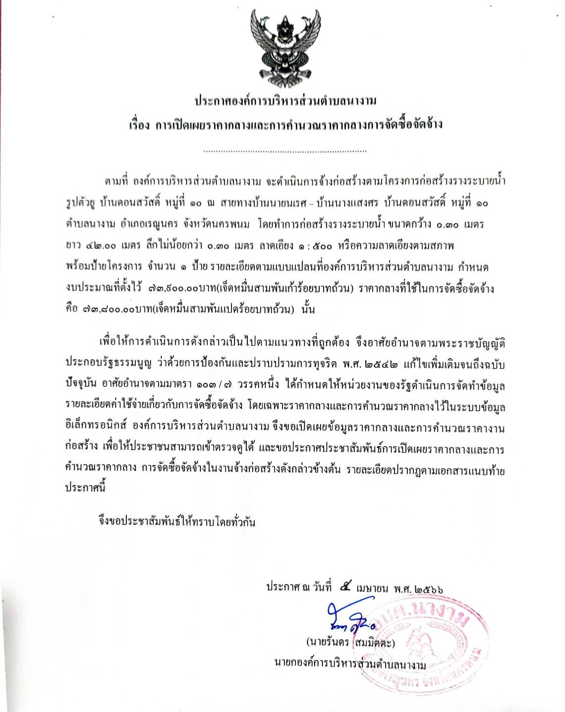 ประชาสัมพันธ์การเปิดเผยราคากลางตามโครงการก่อสร้างรางระบายน้ำรูปตัวยู บ้านดอนสวัสดิ์ หมู่ที่ 10