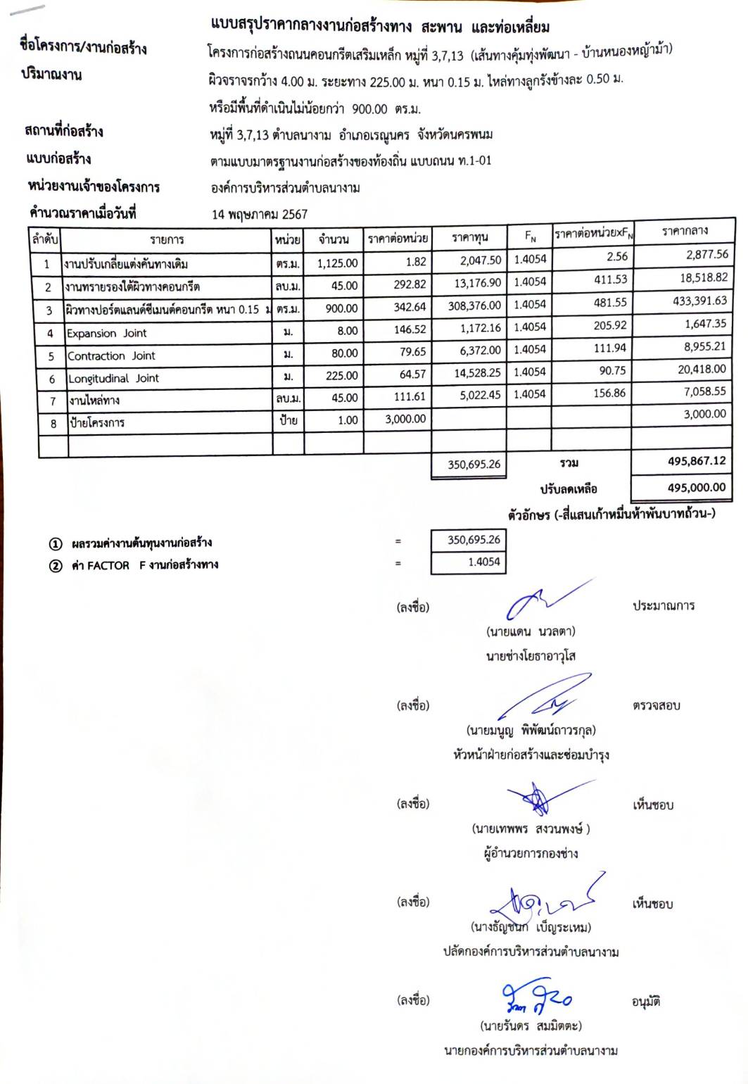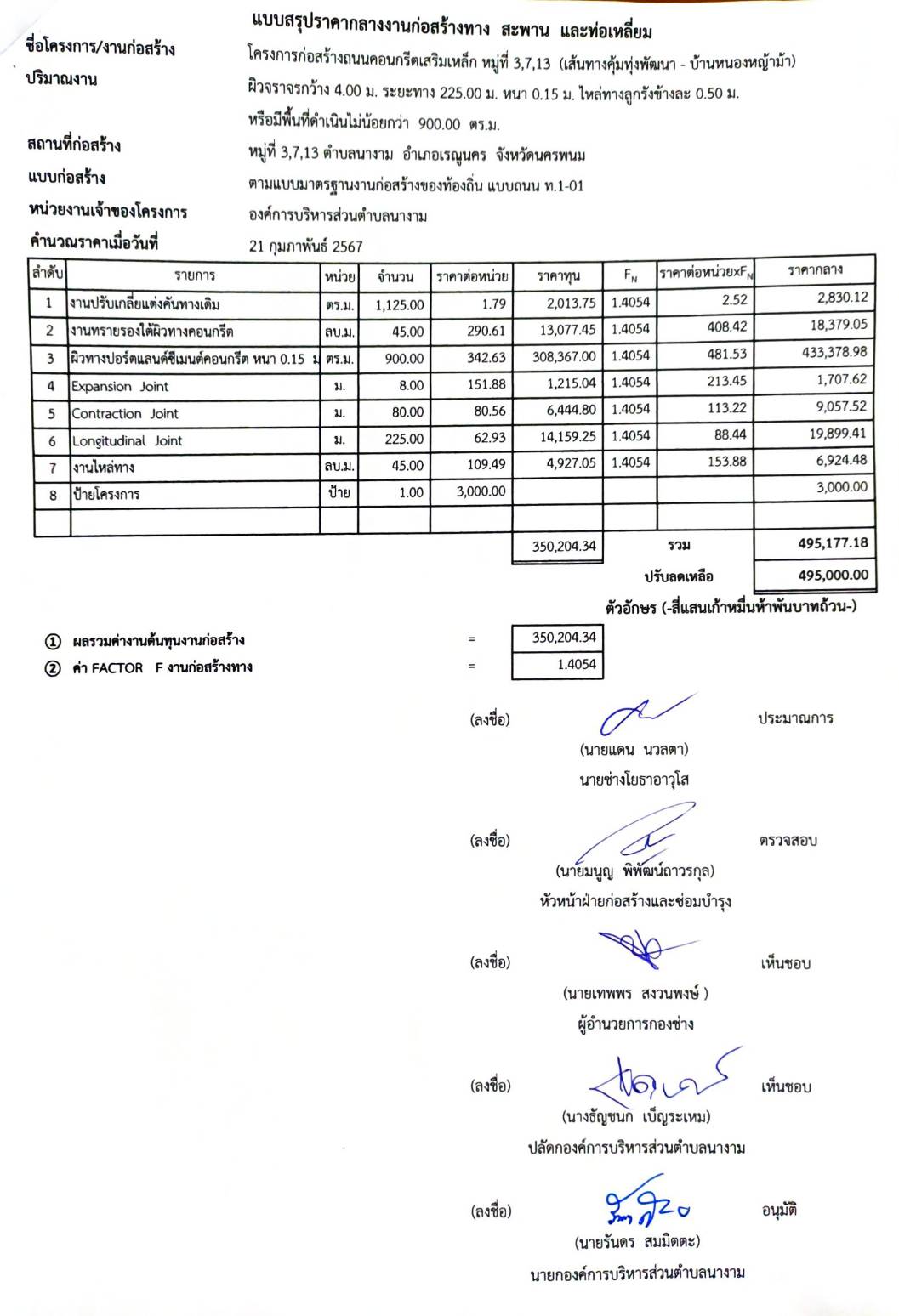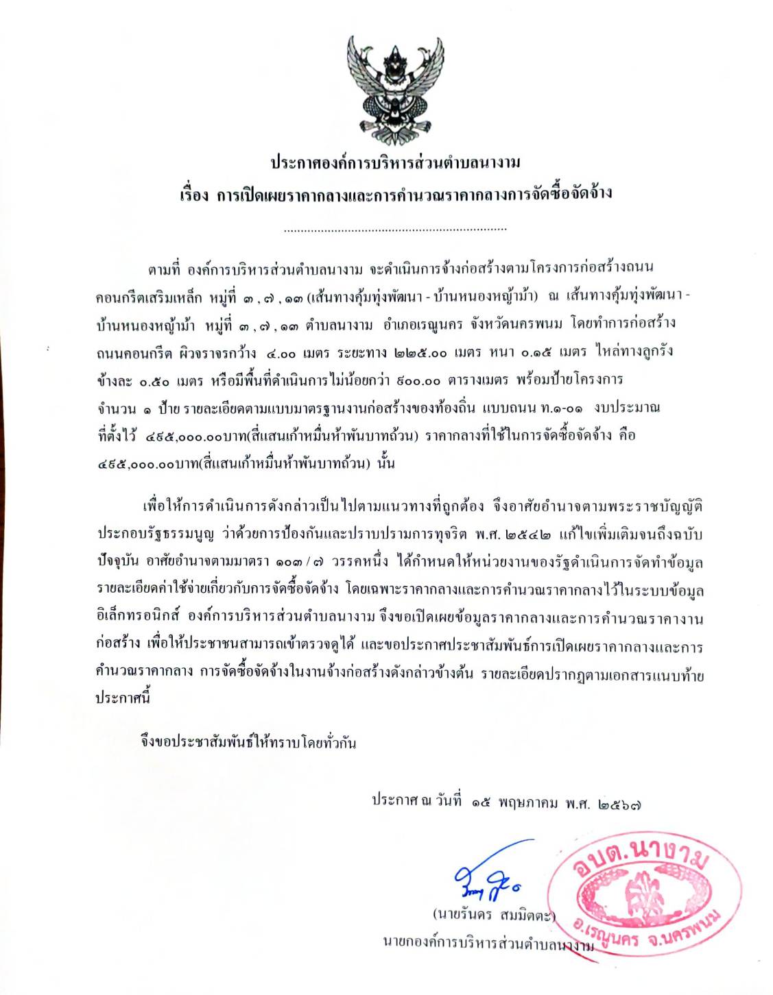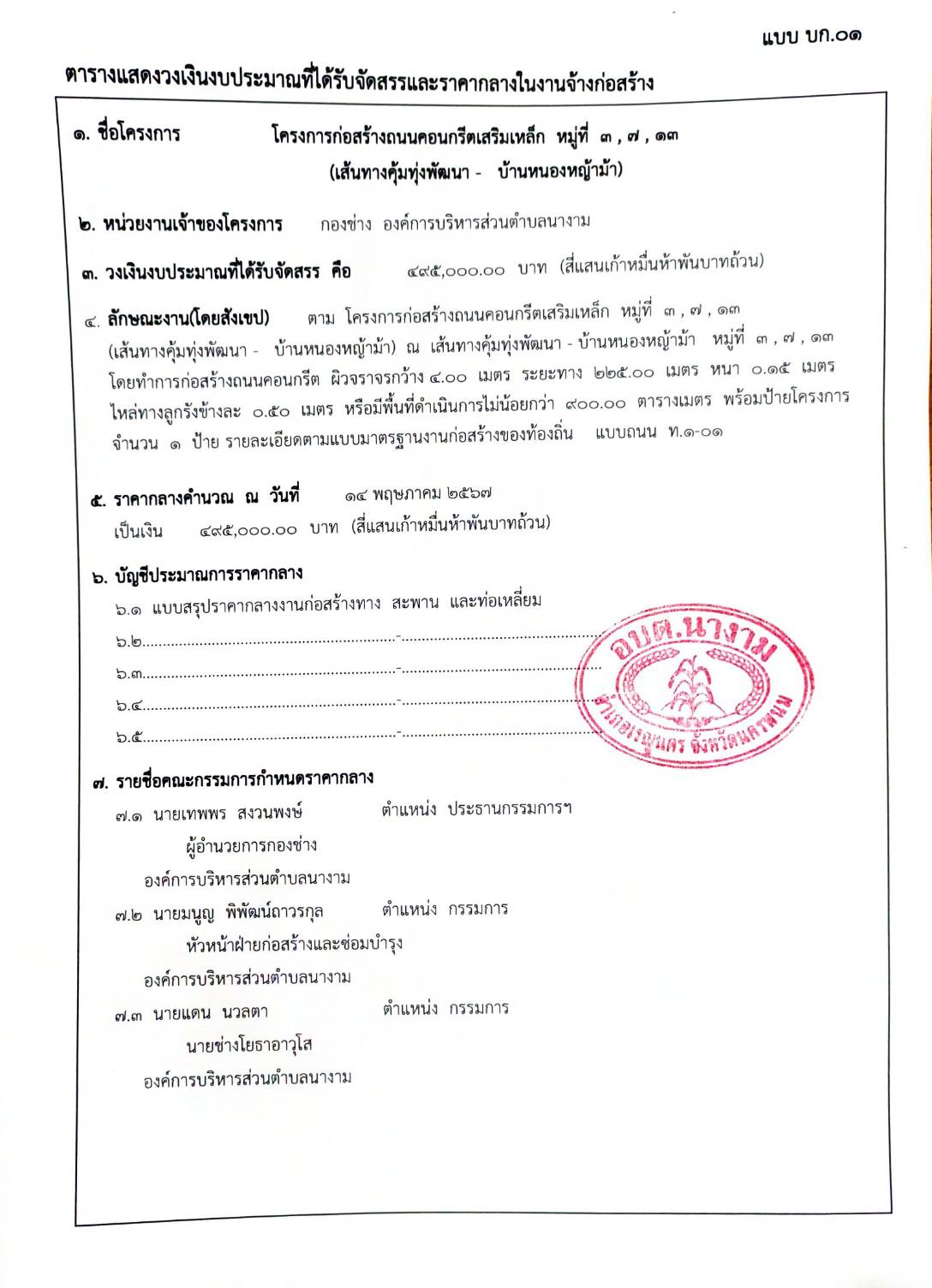 ชื่อเรื่อง : ประชาสัมพันธ์การเปิดเผยราคากลางตามโครงการก่อสร้างถนนคอนกรีตเสริมเหล็ก หมู่ที่ ๓ , ๗ , ๑๓ (เส้นทางคุ้มทุ่งพัฒนา - บ้านหนองหญ้าม้า)