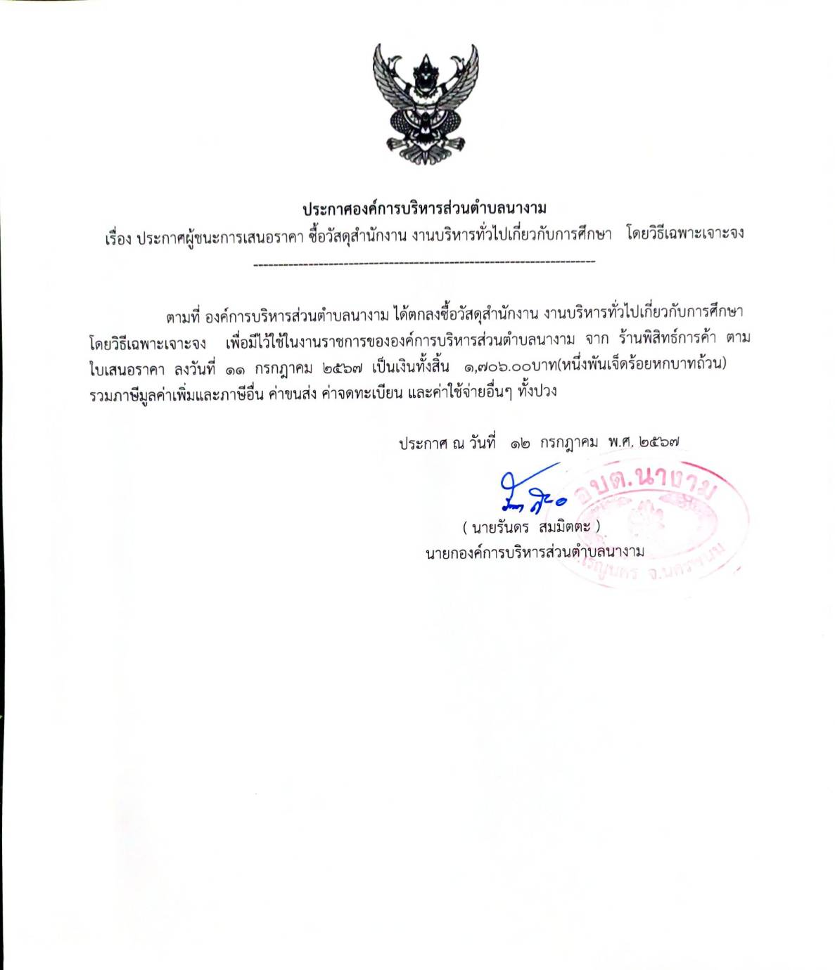 ประกาศผู้ชนะการเสนอราคา ซื้อวัสดุสำนักงาน งานบริหารทั่วไปเกี่ยวกับการศึกษา โดยวิธีเฉพาะเจาะจง