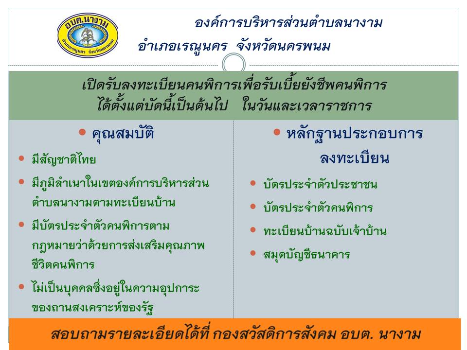 ชื่อเรื่อง : ประชาสัมพันธ์รับลงทะเบียนคนพิการ