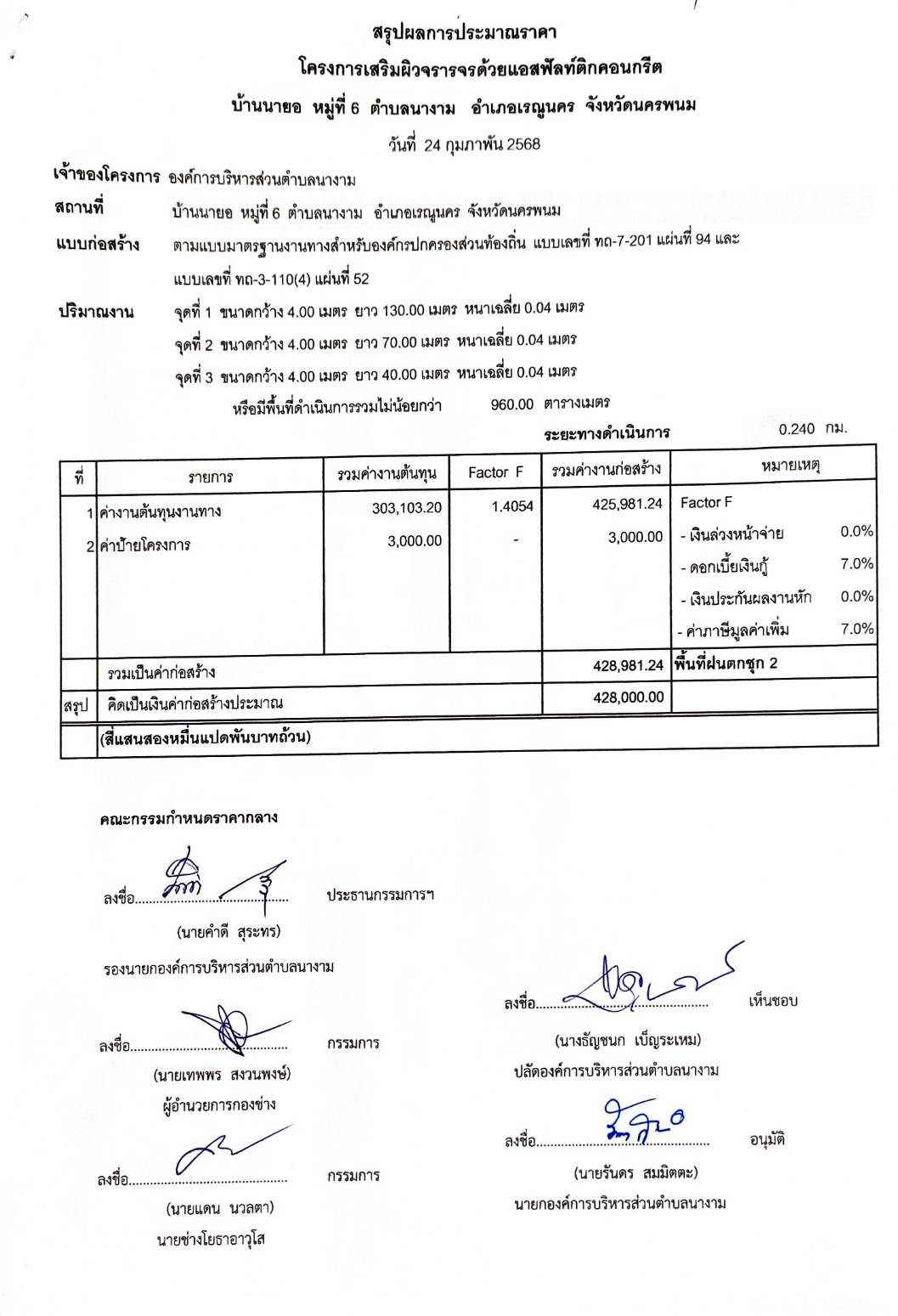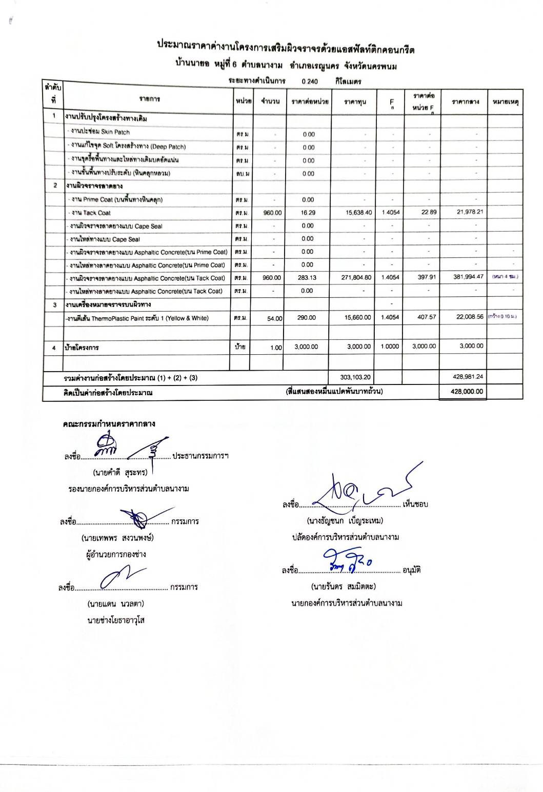 ประชาสัมพันธ์การเปิดเผยราคากลางจ้างตามโครงการเสริมผิวจราจรด้วยแอสฟัลท์ติกคอนกรีต บ้านนายอ หมู่ที่ ๖ โดยวิธีเฉพาะเจาะจง