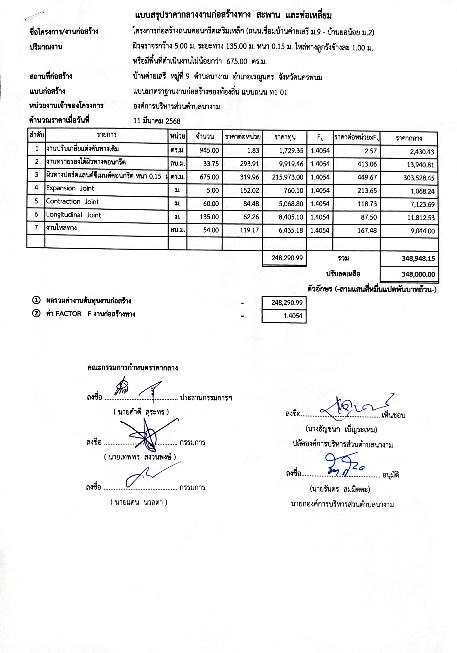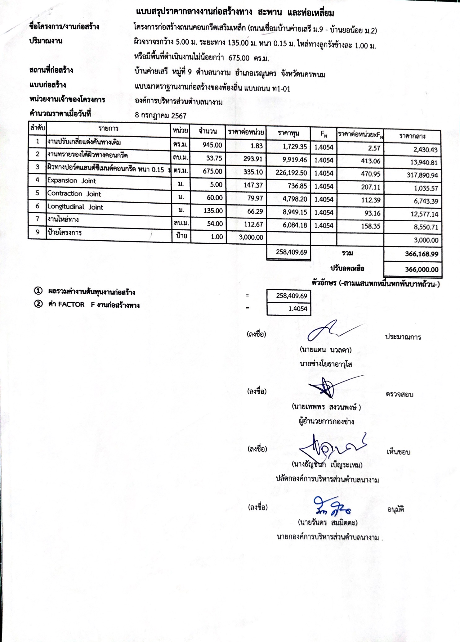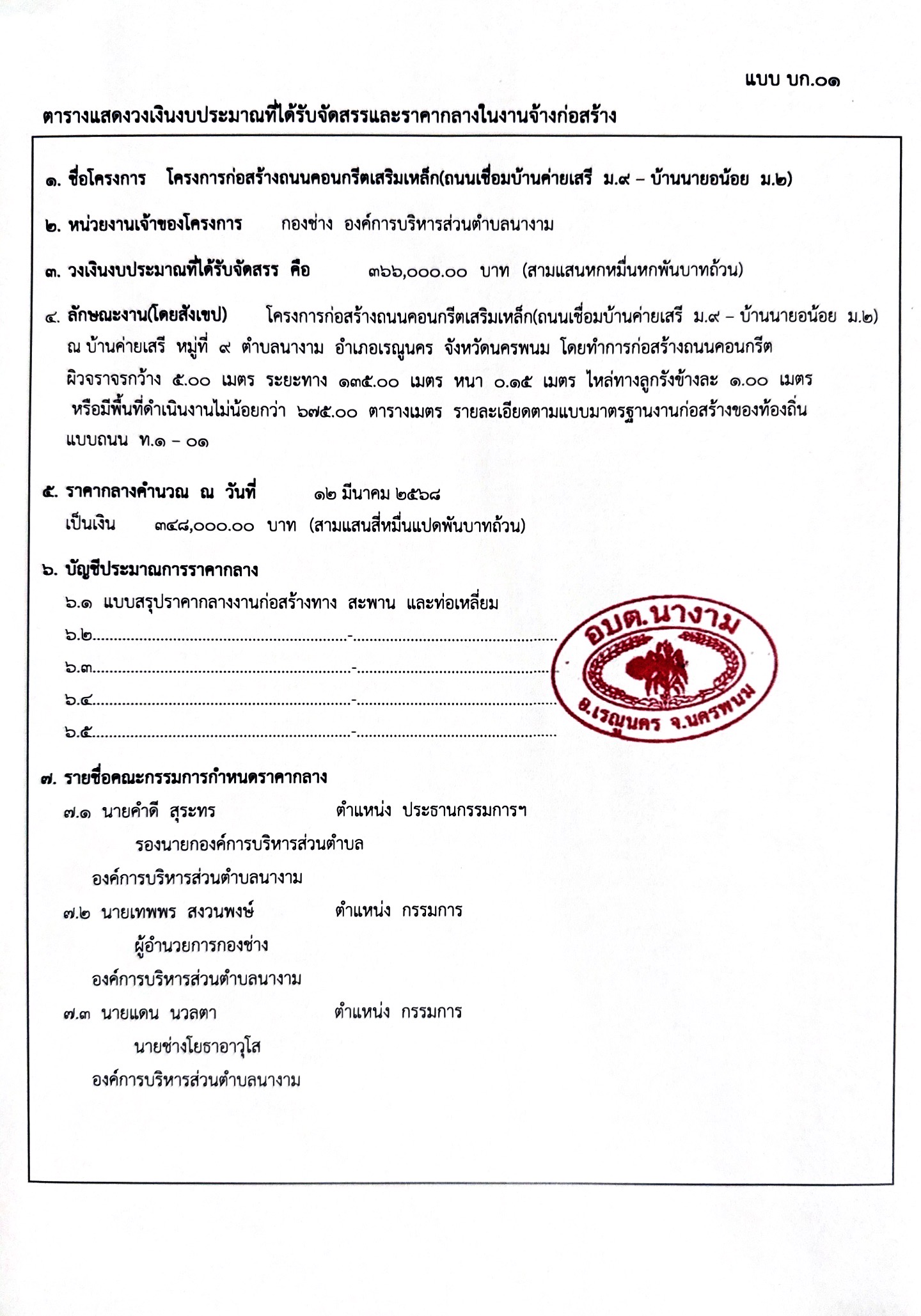ประชาสัมพันธ์การเปิดเผยราคากลางจ้างตามโครงการก่อสร้างถนนคอนกรีตเสริมเหล็ก(ถนนเชื่อมบ้านค่ายเสรี หมู่ที่ 9 - บ้านนายอน้อย หมู่ที่ 2) โดยวิธีเฉพาะเจาะจง