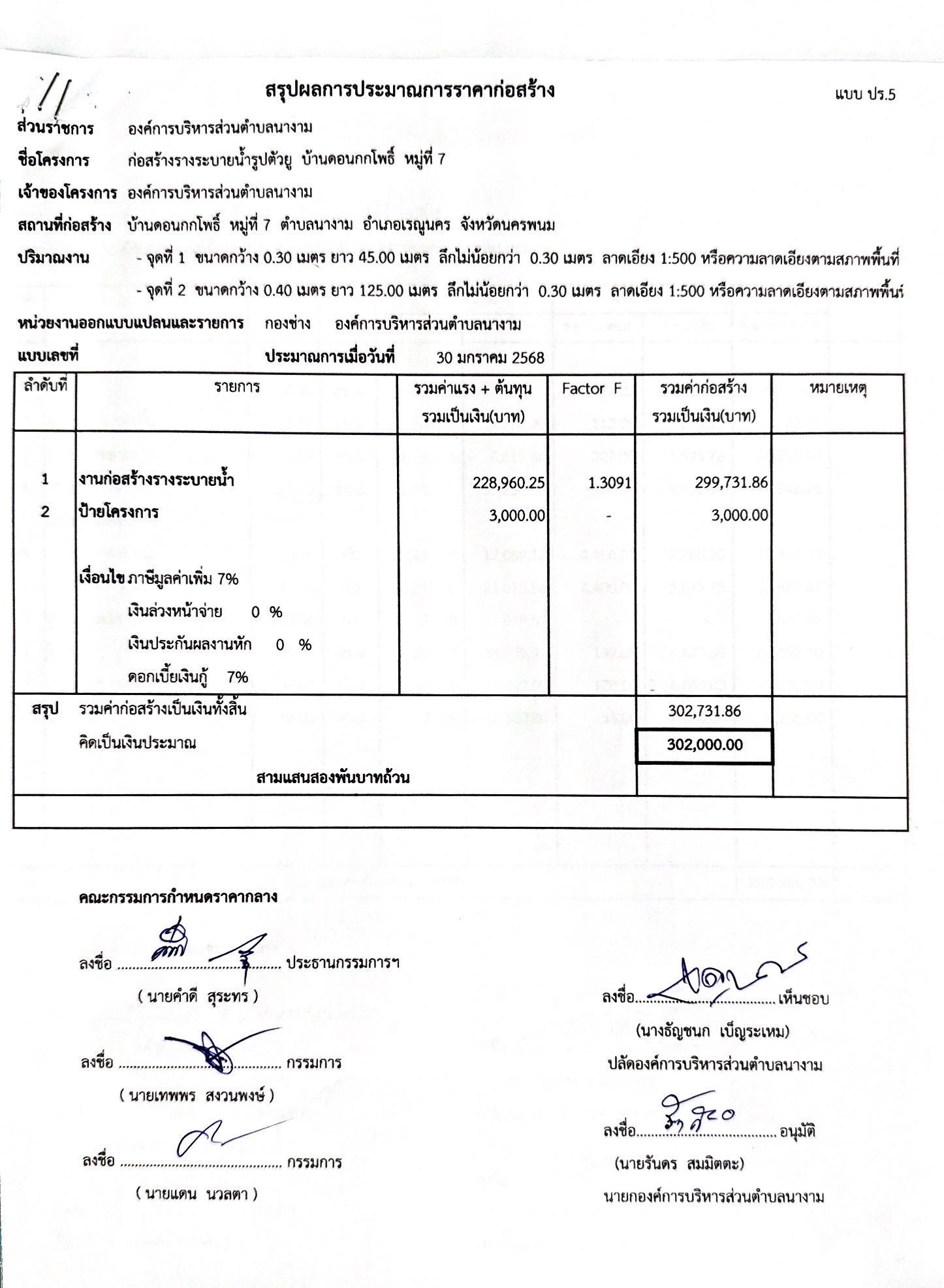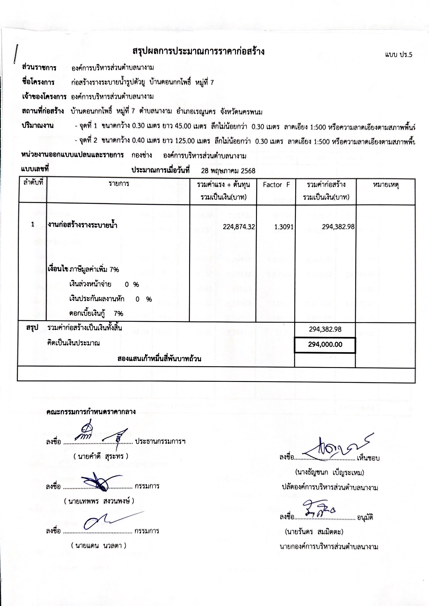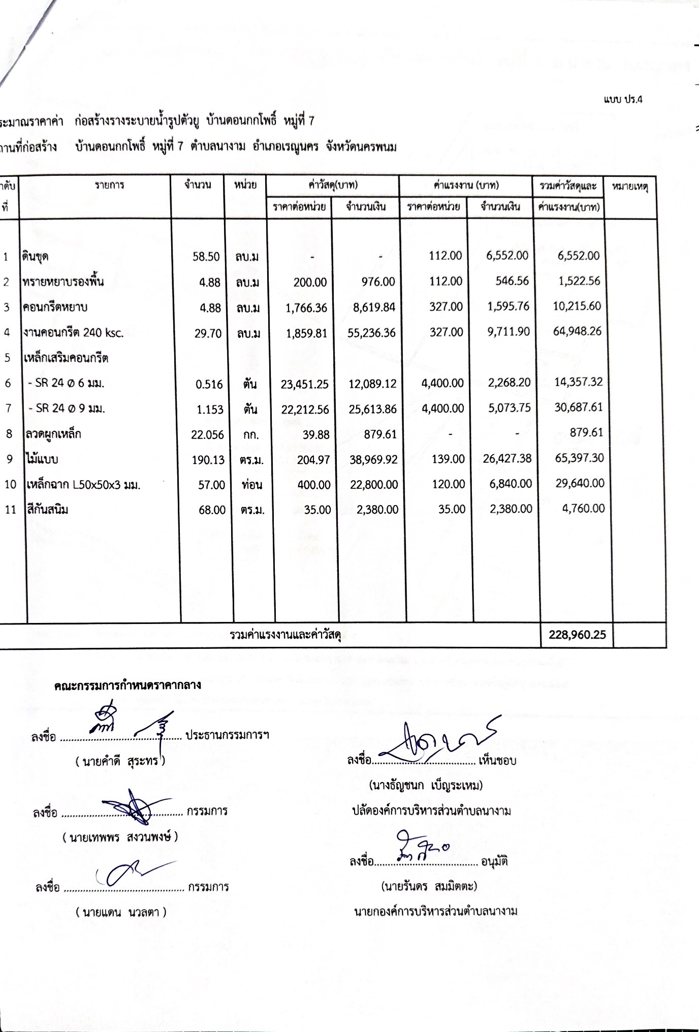 ประชาสัมพันธ์การเปิดเผยราคากลาง จ้างตามโครงการก่อสร้างรางระบายน้ำรูปตัวยู บ้านดอนกกโพธิ์ หมู่ที่ ๗