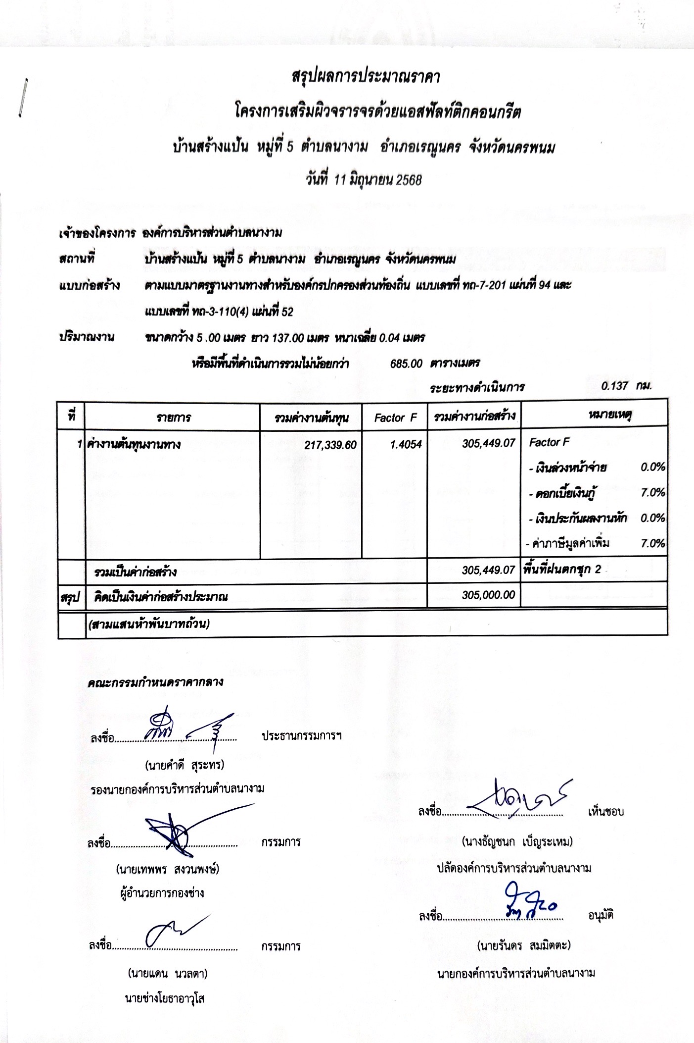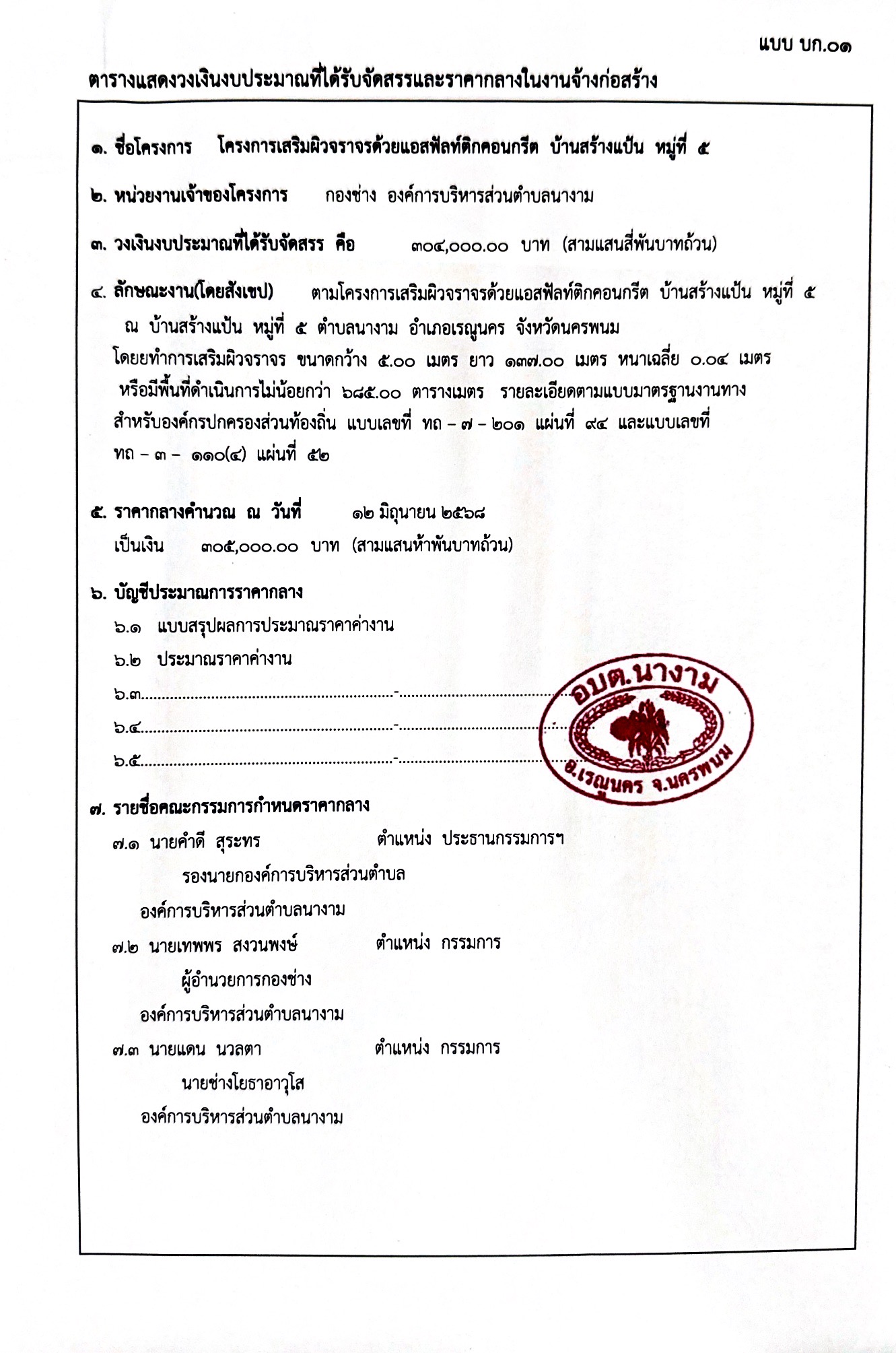 ชื่อเรื่อง : ประชาสัมพันธ์การเปิดเผยราคากลาง จ้างตามโครงการเสริมผิวจราจรด้วยแอสฟัลท์ติกคอนกรีต บ้านสร้างแป้น หมู่ที่ 5