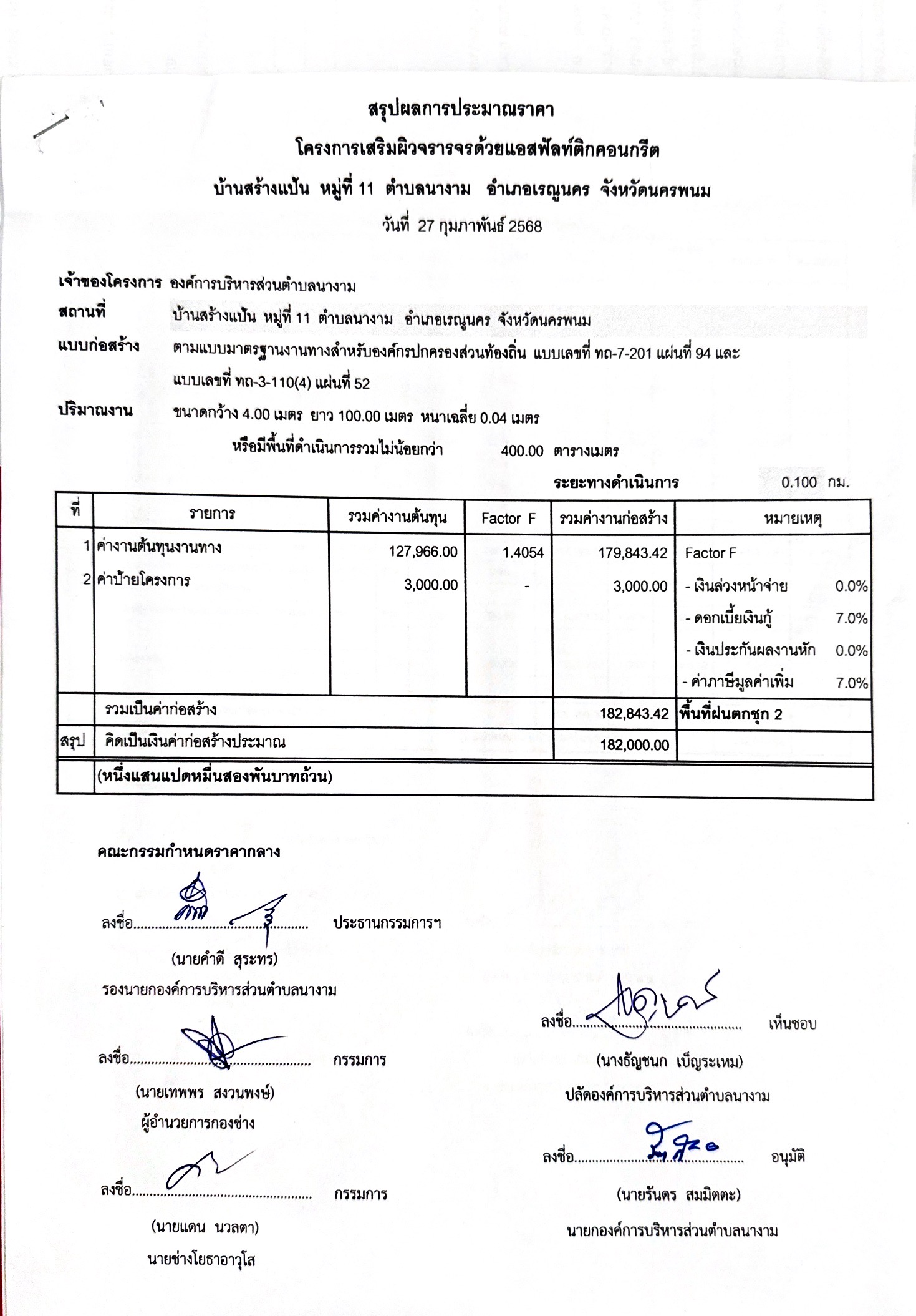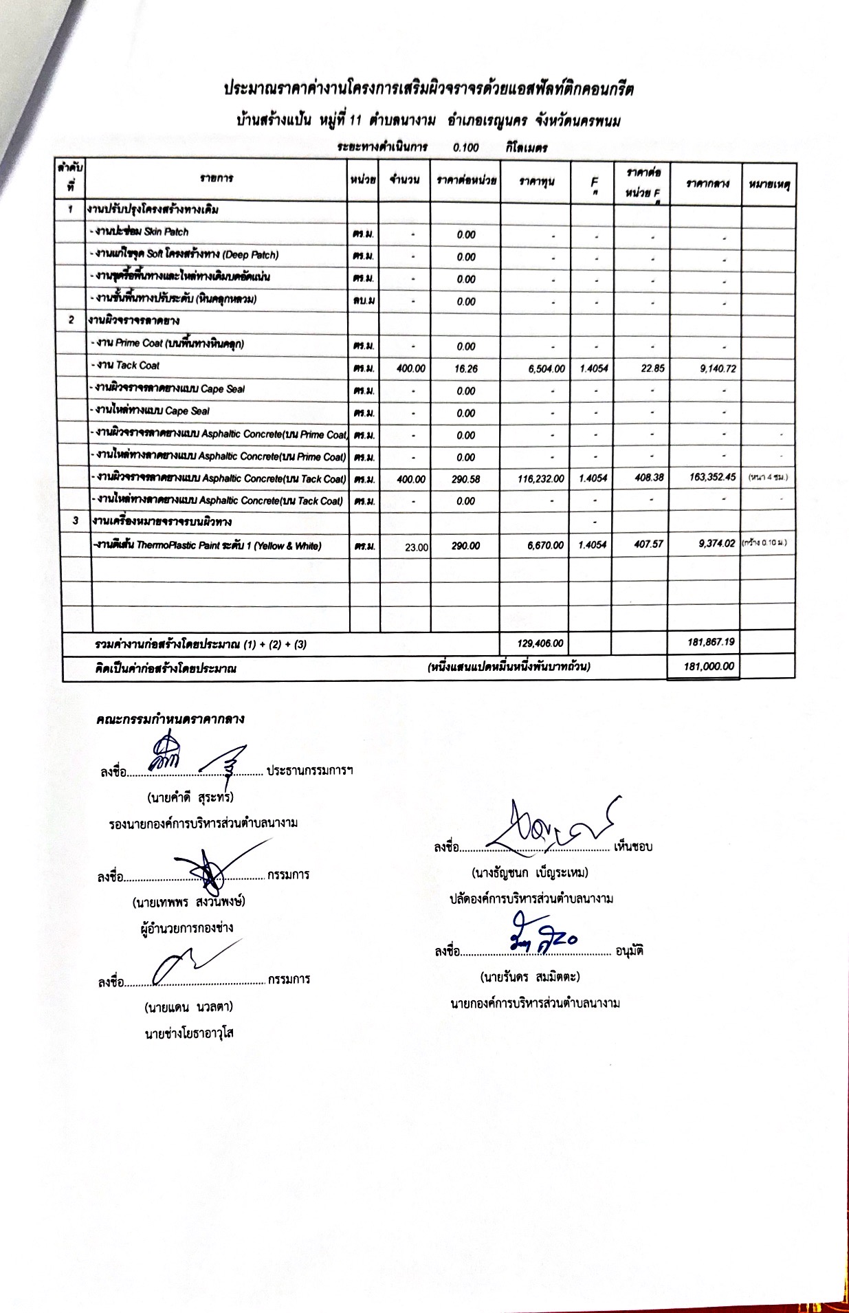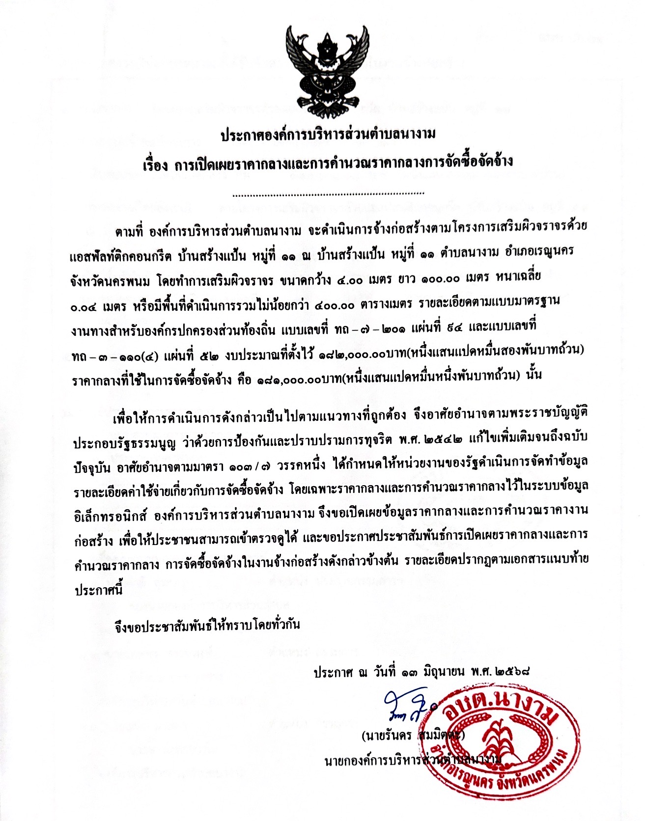 ประชาสัมพันธ์การเปิดเผยราคากลาง จ้างตามโครงการเสริมผิวจราจรด้วยแอสฟัลท์ติกคอนกรีต บ้านสร้างแป้น หมู่ที่ 11