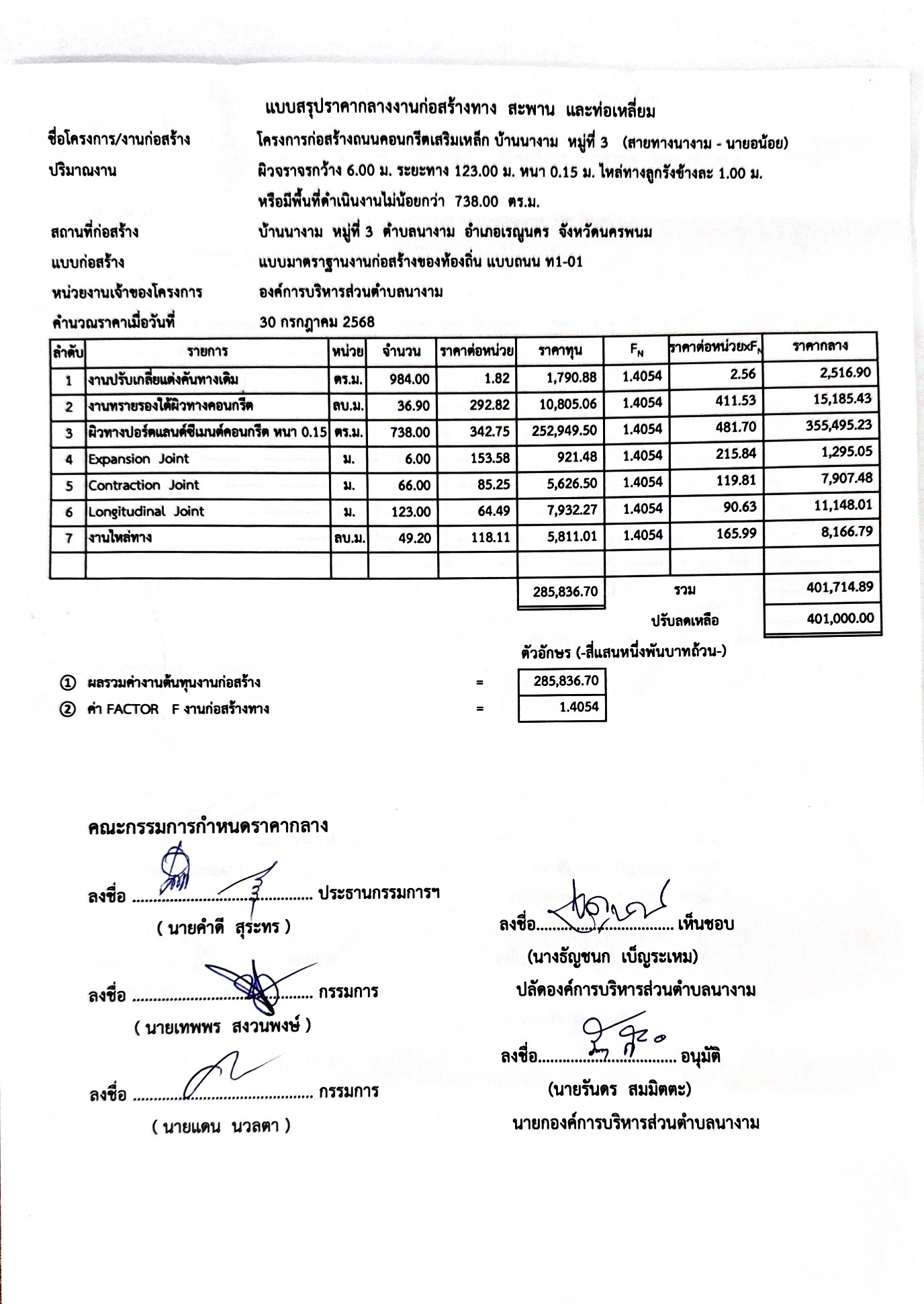 ประชาสัมพันธ์การเปิดเผยราคากลาง จ้างตามโครงการก่อสร้างถนนคอนกรีตเสริมเหล็ก บ้านนางาม หมู่ที่ 3(สายทางนางาม - นายอน้อย) โดยวิธีเฉพาะเจาะจง