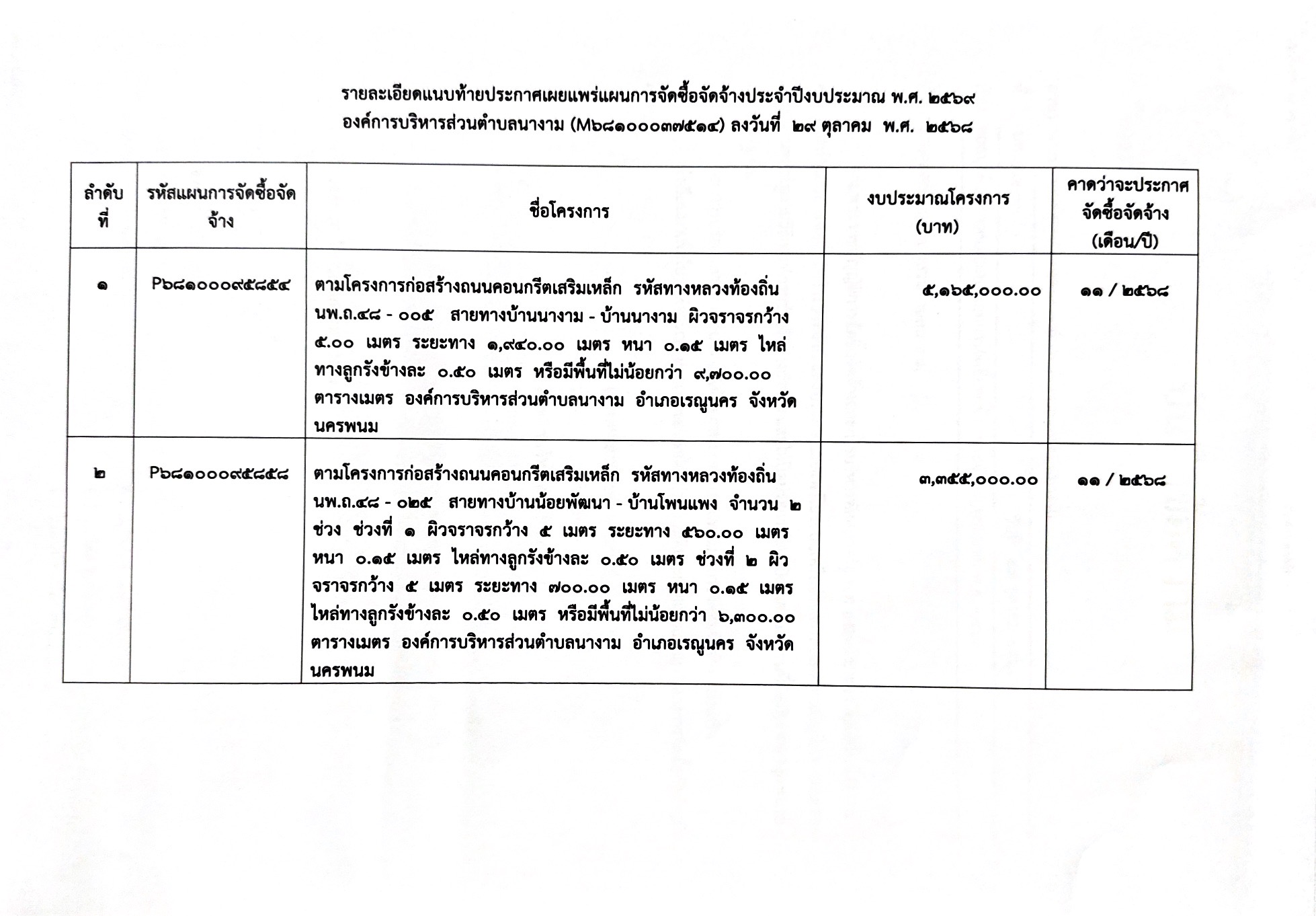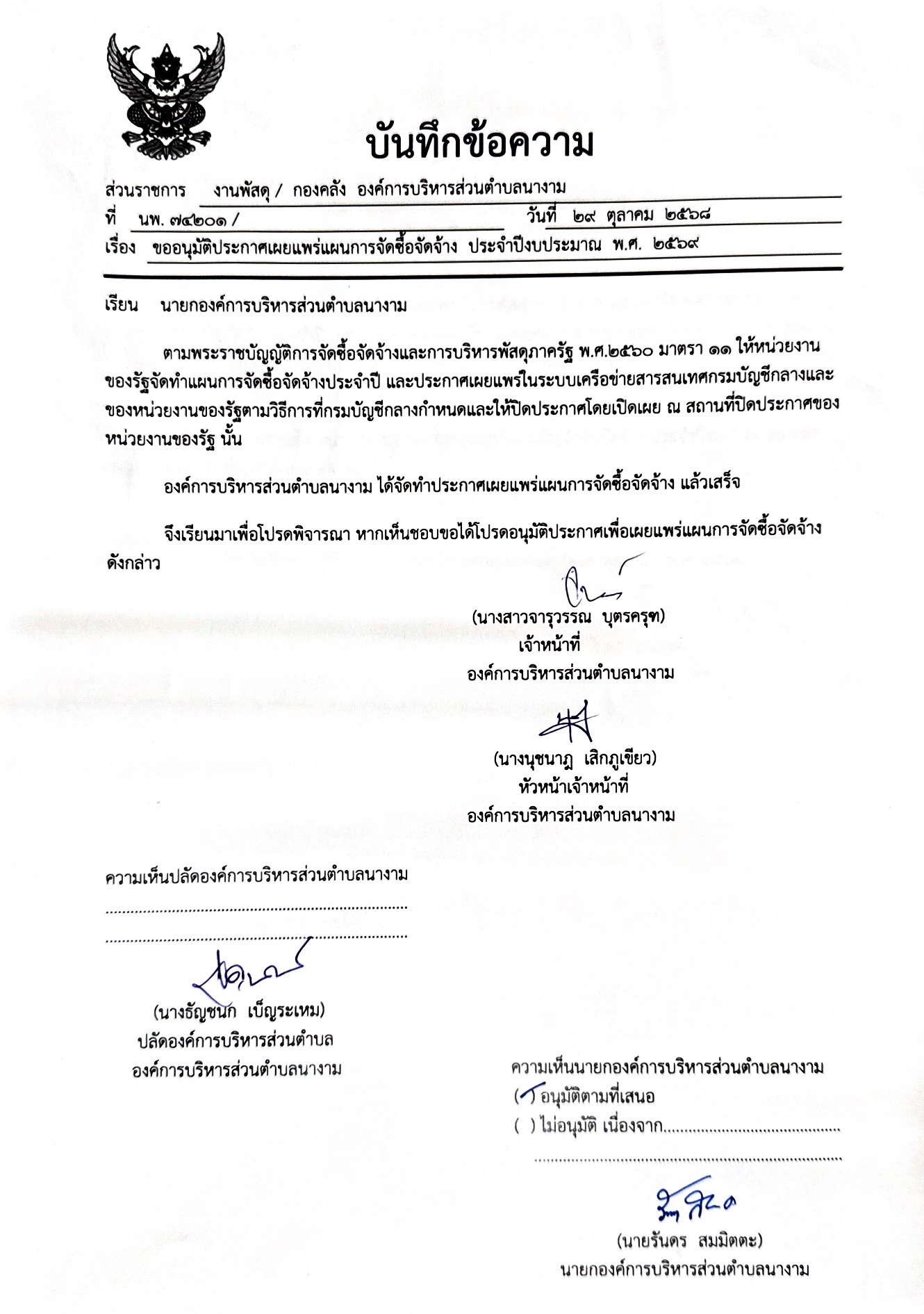 ชื่อเรื่อง : เผยแพร่แผนการจัดซื้อจัดจ้าง ประจำปีงบประมาณ พ.ศ. ๒๕๖๙